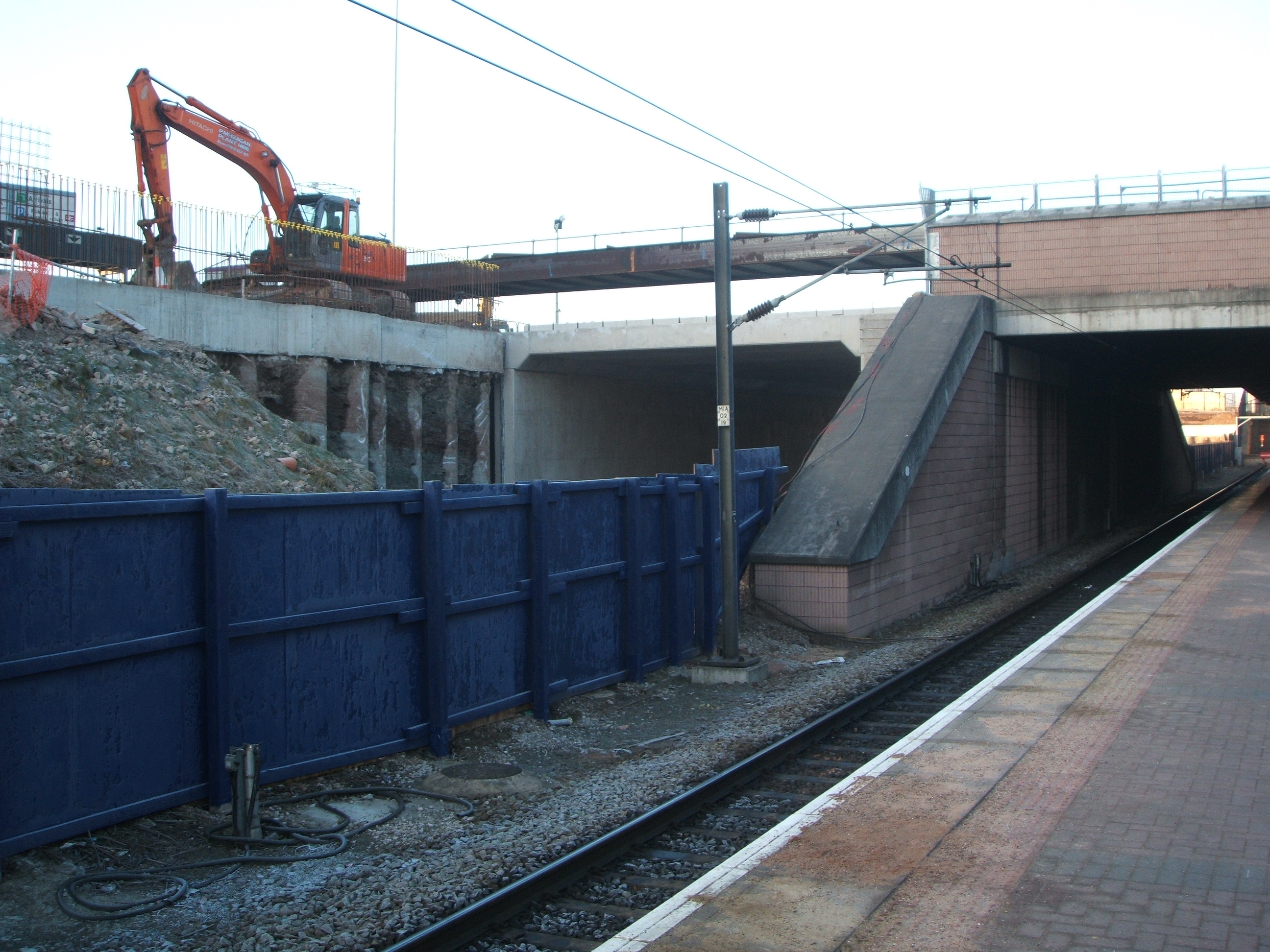 Outwood Lane at the airport passes over the ends of the station platforms so an additional bridge section had to be constructed to take the road over the new platform.