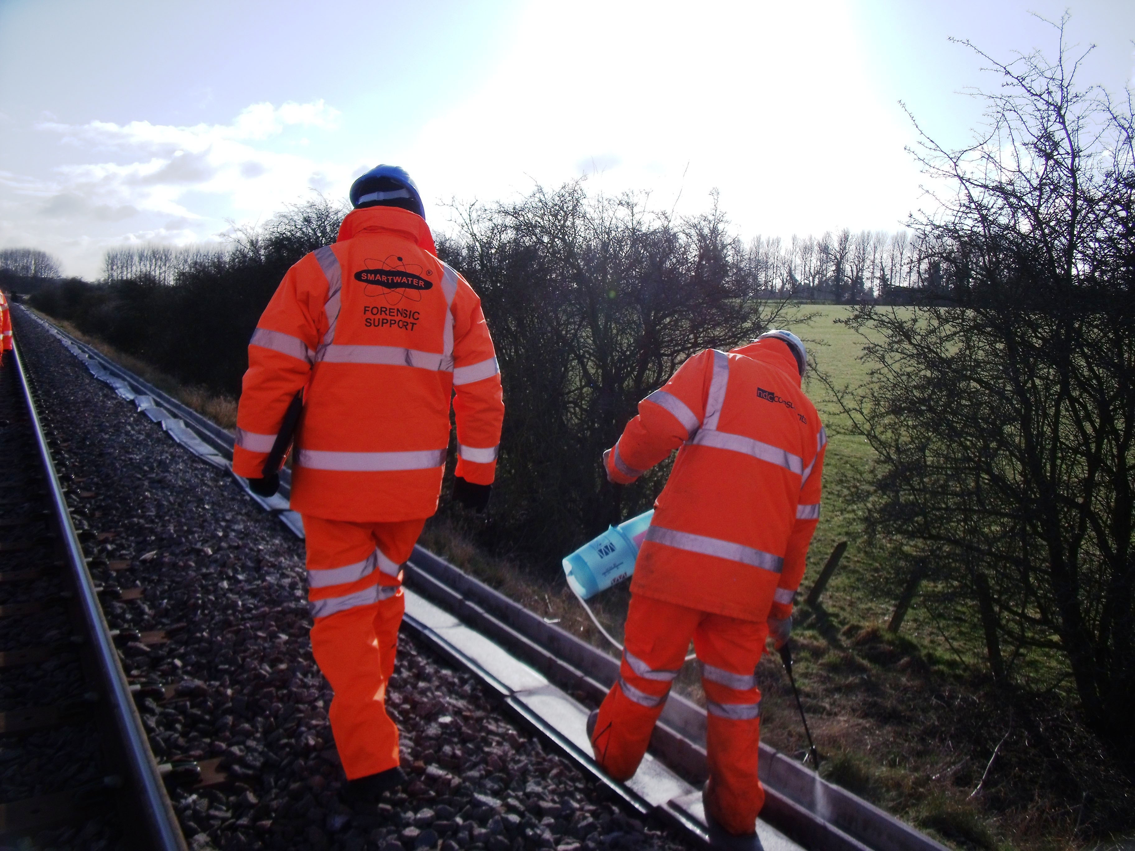 Trackside cable in parts of the West Midlands is now marked with a forensic liquid called SmartWater, which has over a billion different chemical code combinations and can only be seen under special ultra-violet light. Every kilometre of cable is marked with a different code so that police can pinpoint the exact location from which it was taken – providing a link between the criminal and the crime scene.