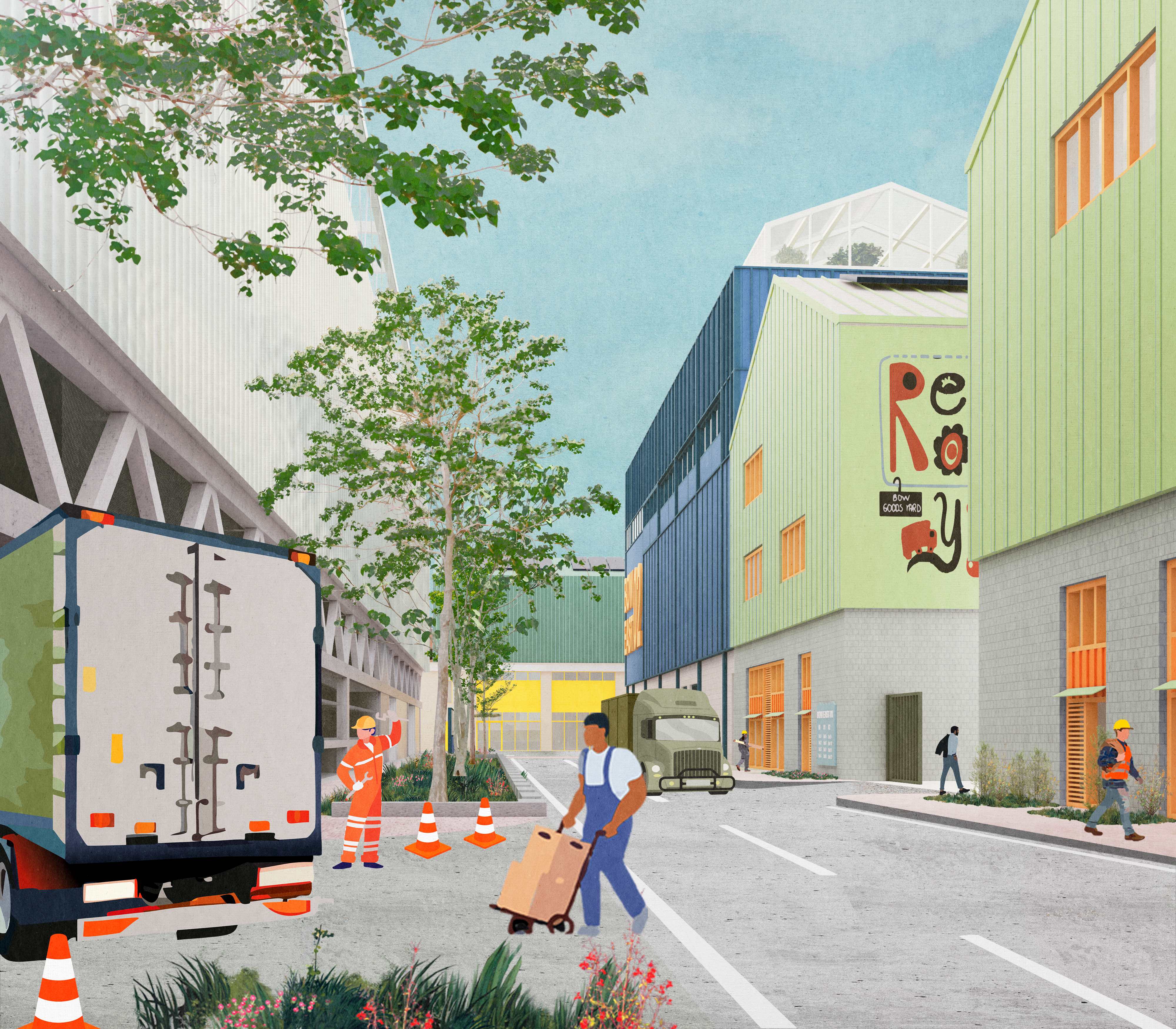 The industrial-led masterplan will enable Bow Goods Yard to help London transition to a greener freight future by taking up to 90,000 HGV movements a year from London’s roads, reducing congestion and emissions. Proposals also include the introduction of an integrated last mile logistics hub.