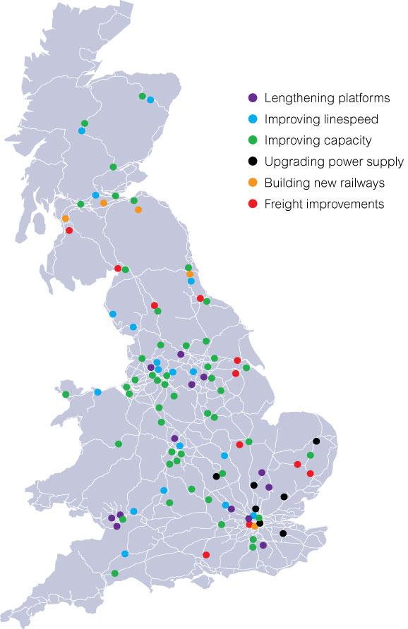 Scotland schemes: Working with and funded by Transport Scotland, Network Rail has also identified expansion schemes to benefit passengers and freight users in Scotland, including: