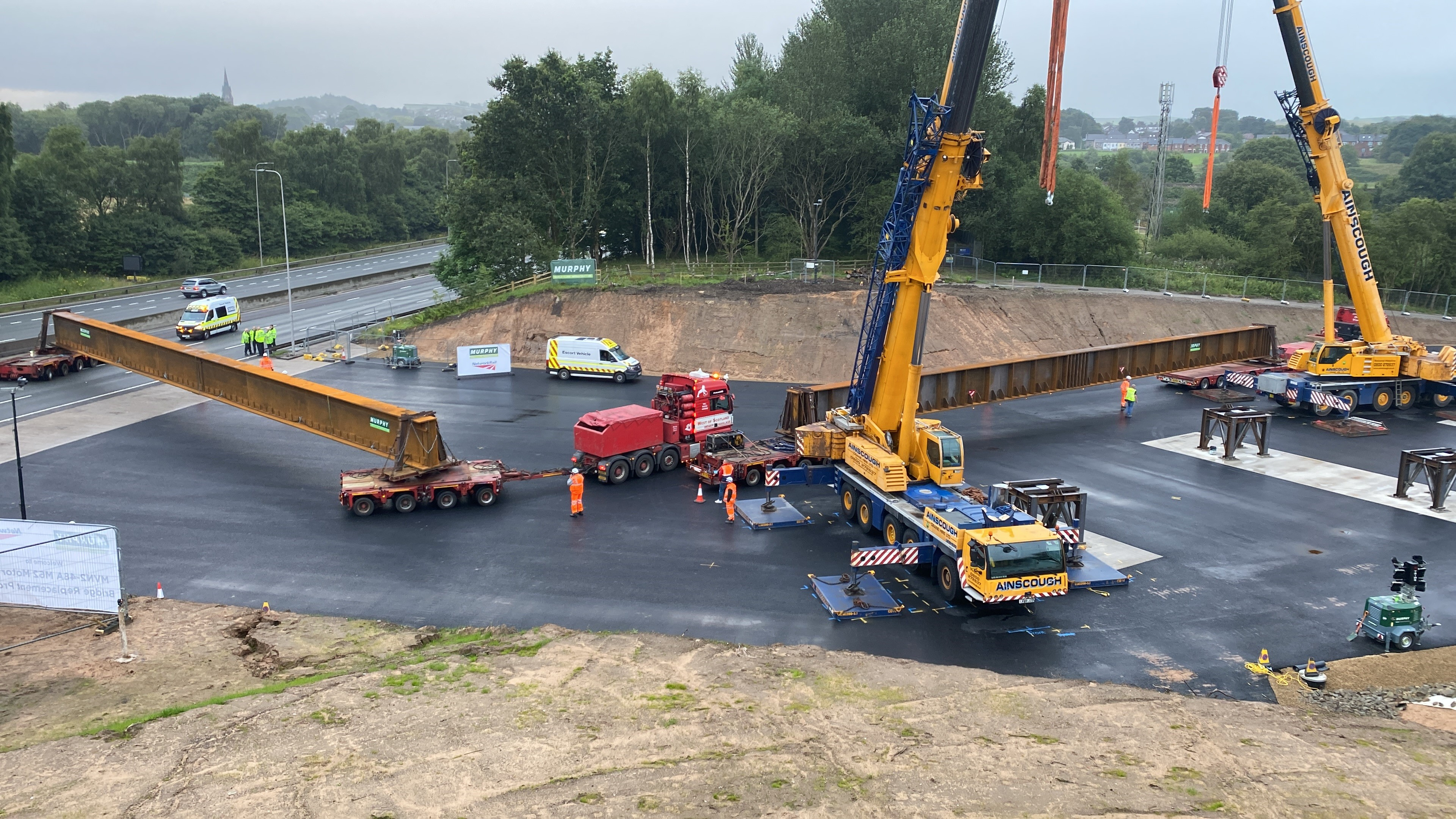In recent weeks, two 42 metre, 70 tonne steel beams were delivered to the work site during an overnight closure of the M62.