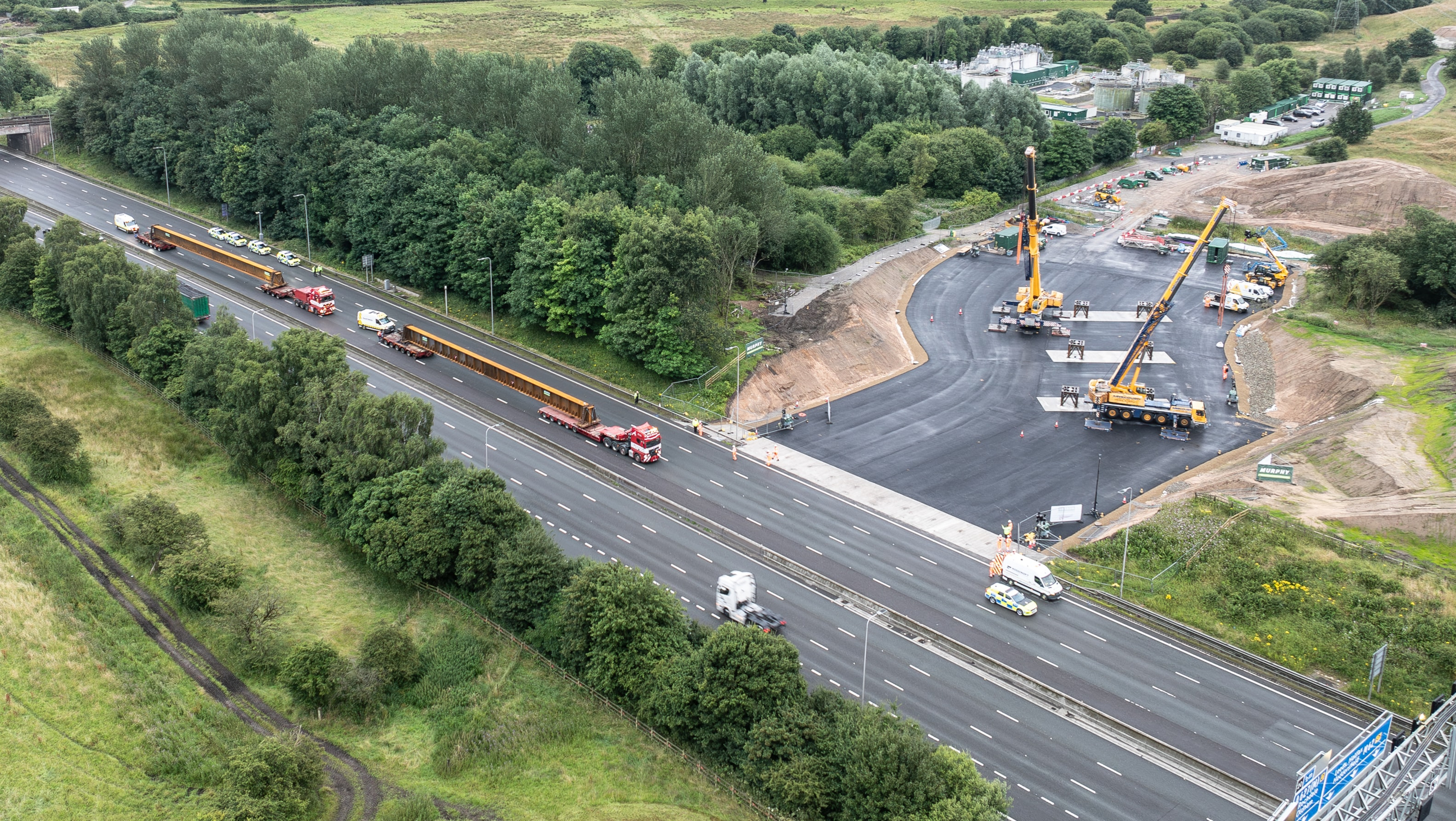 Network Rail reveals drone footage of 42 metre beam delivery ahead of multi-million-pound bridge rebuild over the M62.