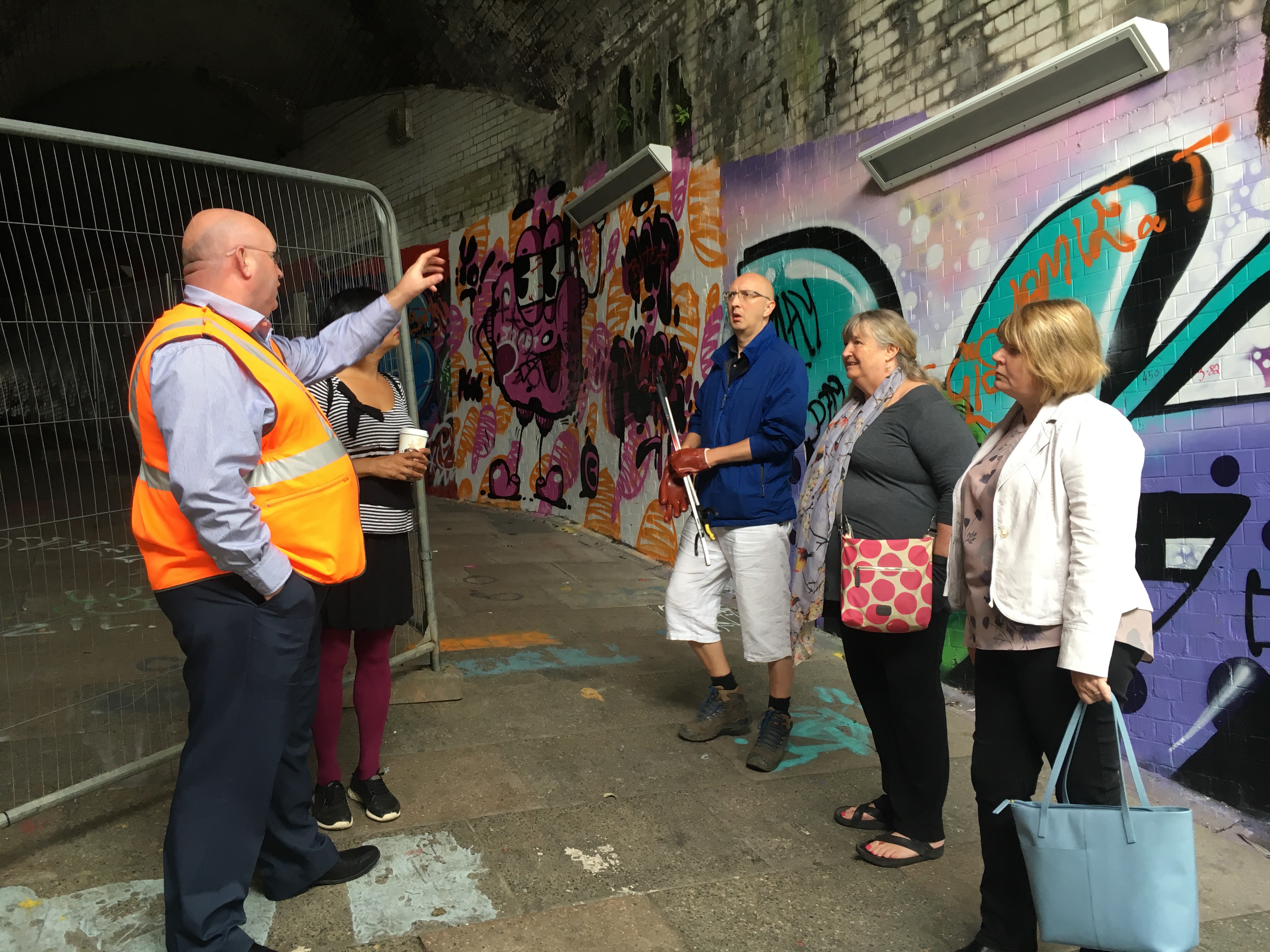 Julie James, Assembly Member for Swansea West, visited Pottery Street Subway in Swansea city centre to see first-hand how Network Rail is working with the HigherStreet International to transform the area into a safer and more pleasant environment.