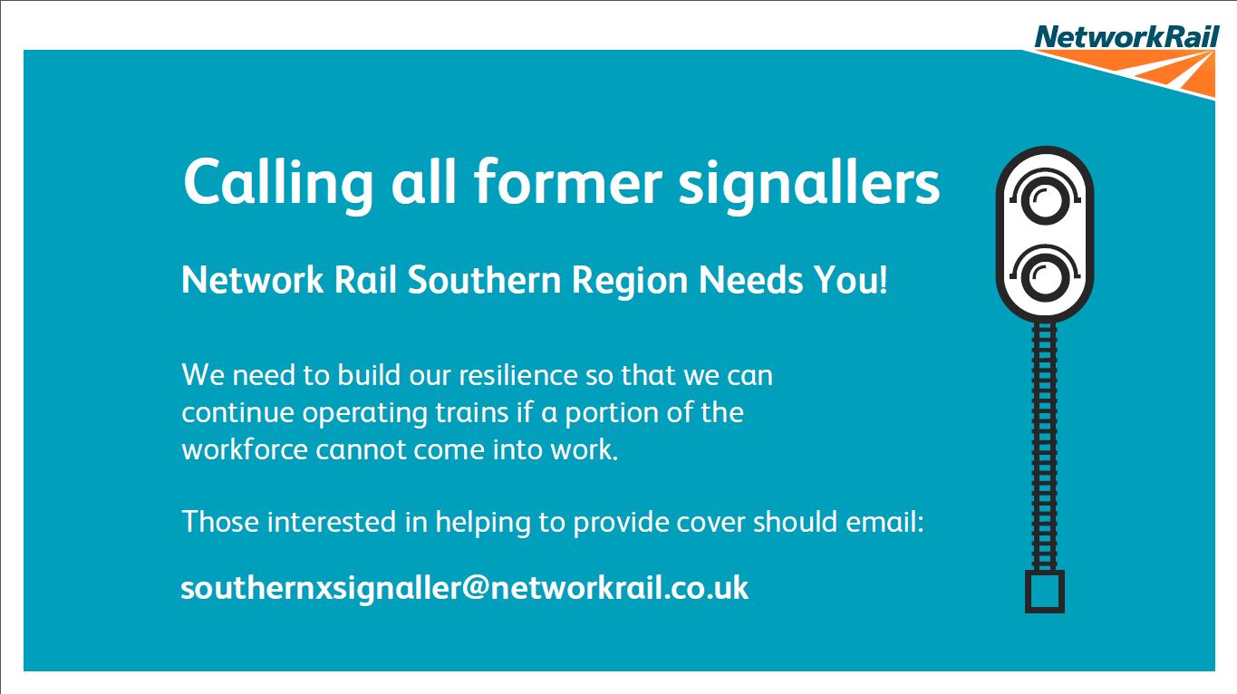 Any former professional signallers interested in helping the railway should email southernxsignaller@networkrail.co.uk