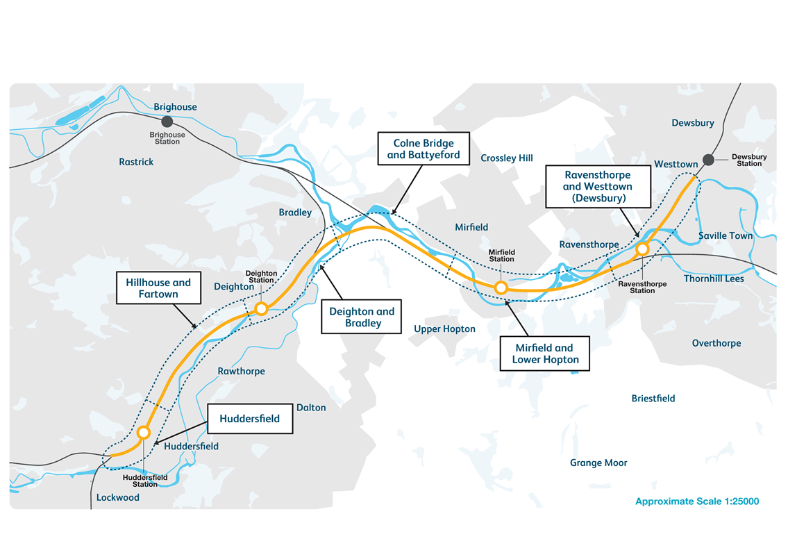 - Major upgrades to stations at Huddersfield, Deighton, Mirfield and providing a relocated station at Ravensthorpe