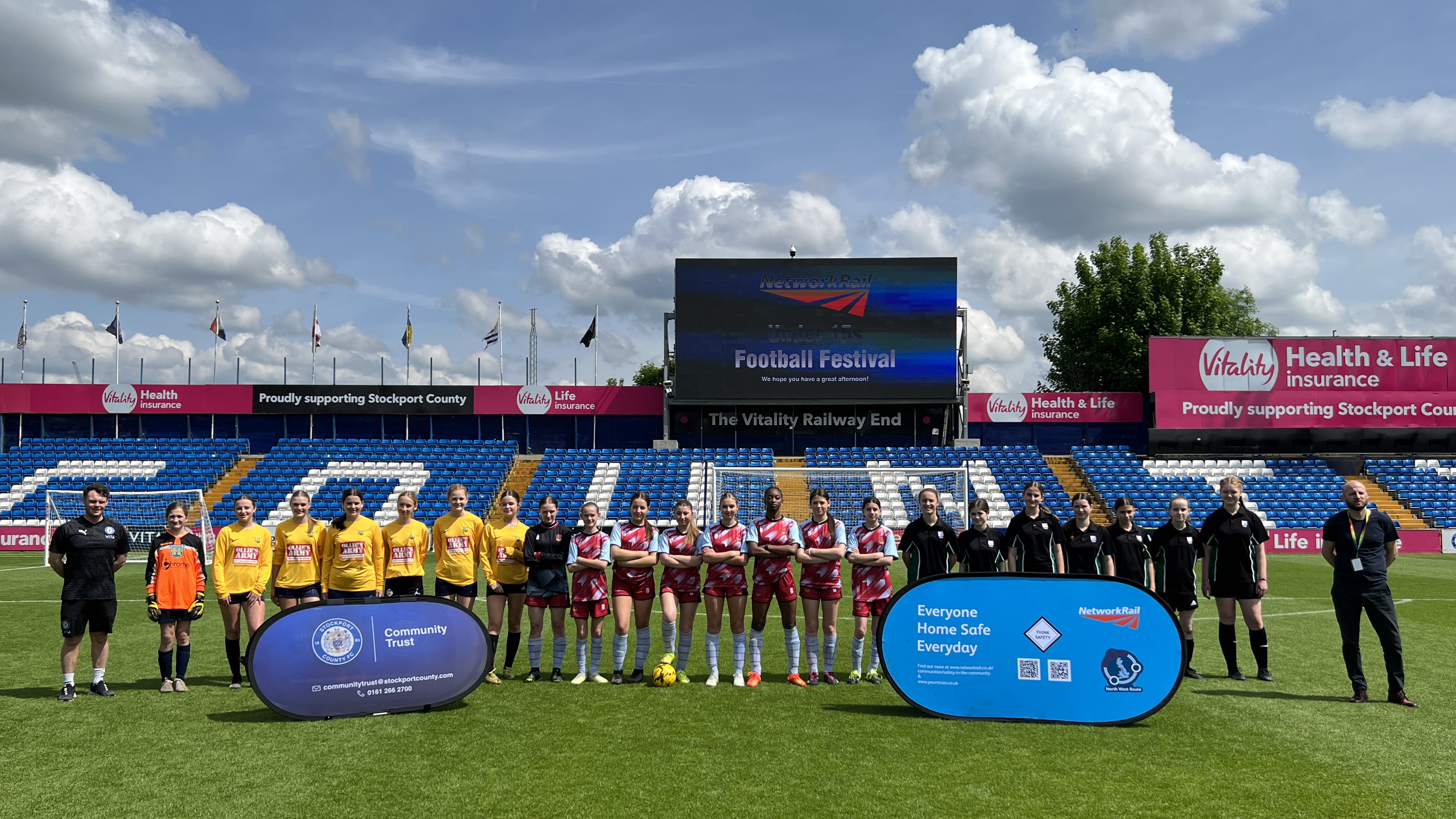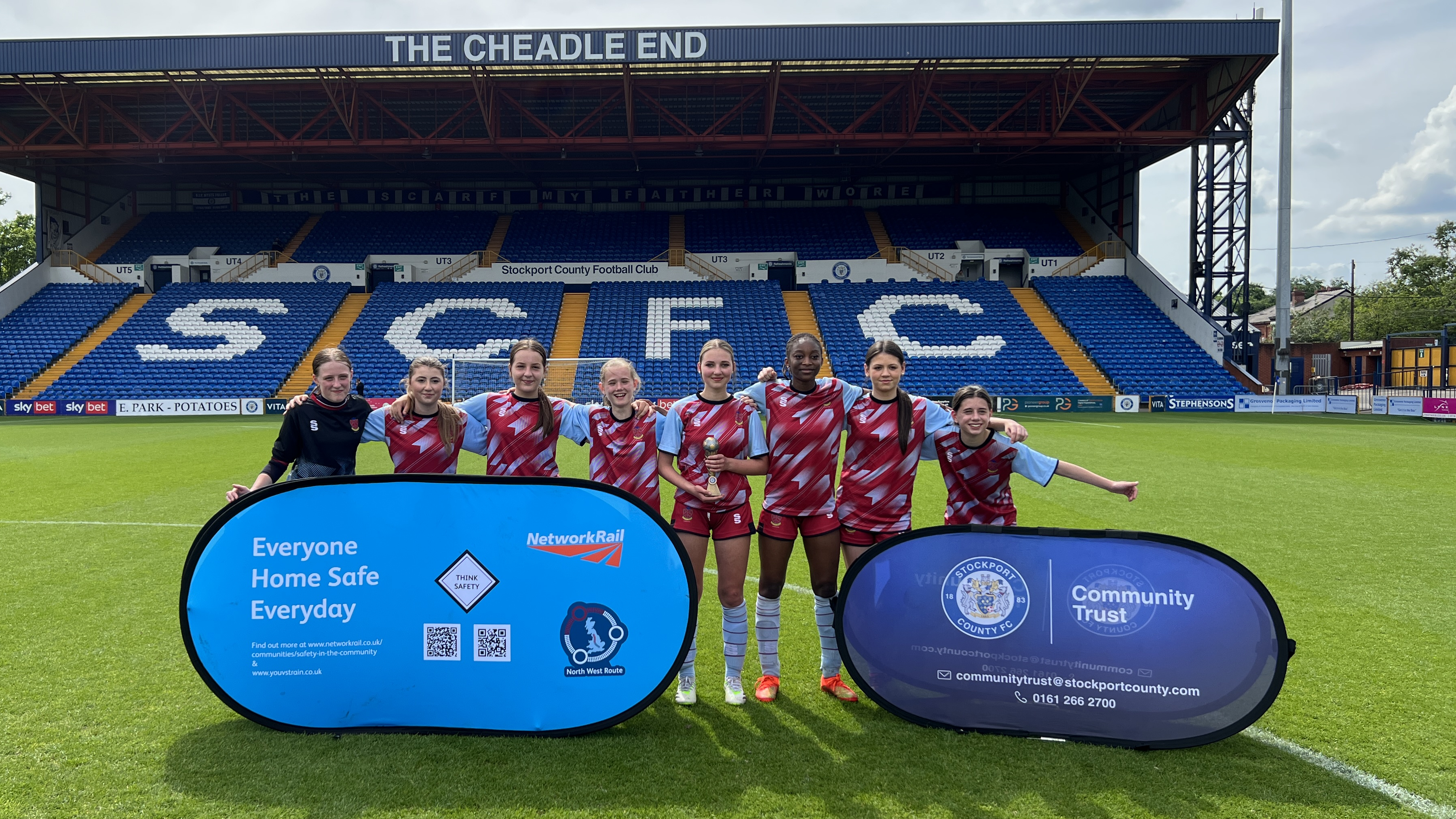 On Friday 17 May, girls from high schools across Stockport were invited to Edgeley Park to compete in a friendly football tournament and to learn about important railway safety along the way.