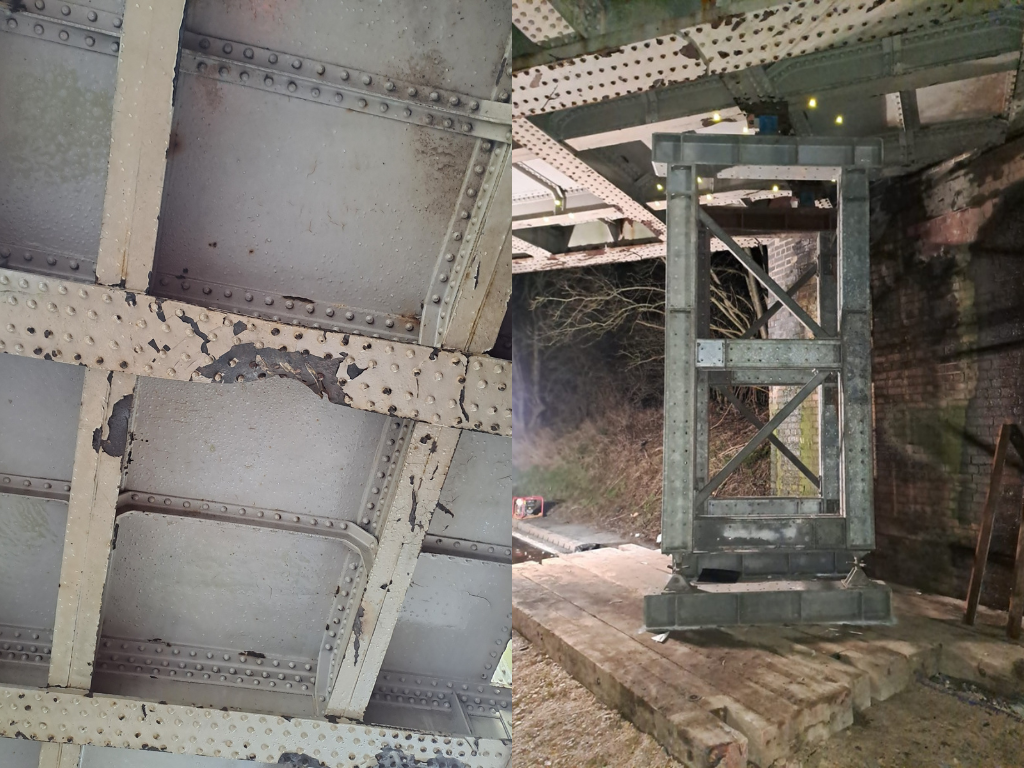 Network Rail teams installed temporary heavy-duty props which allowed the railway line above, which was being used as a major freight diversion due to planned work in the Keadby area, to remain operational.