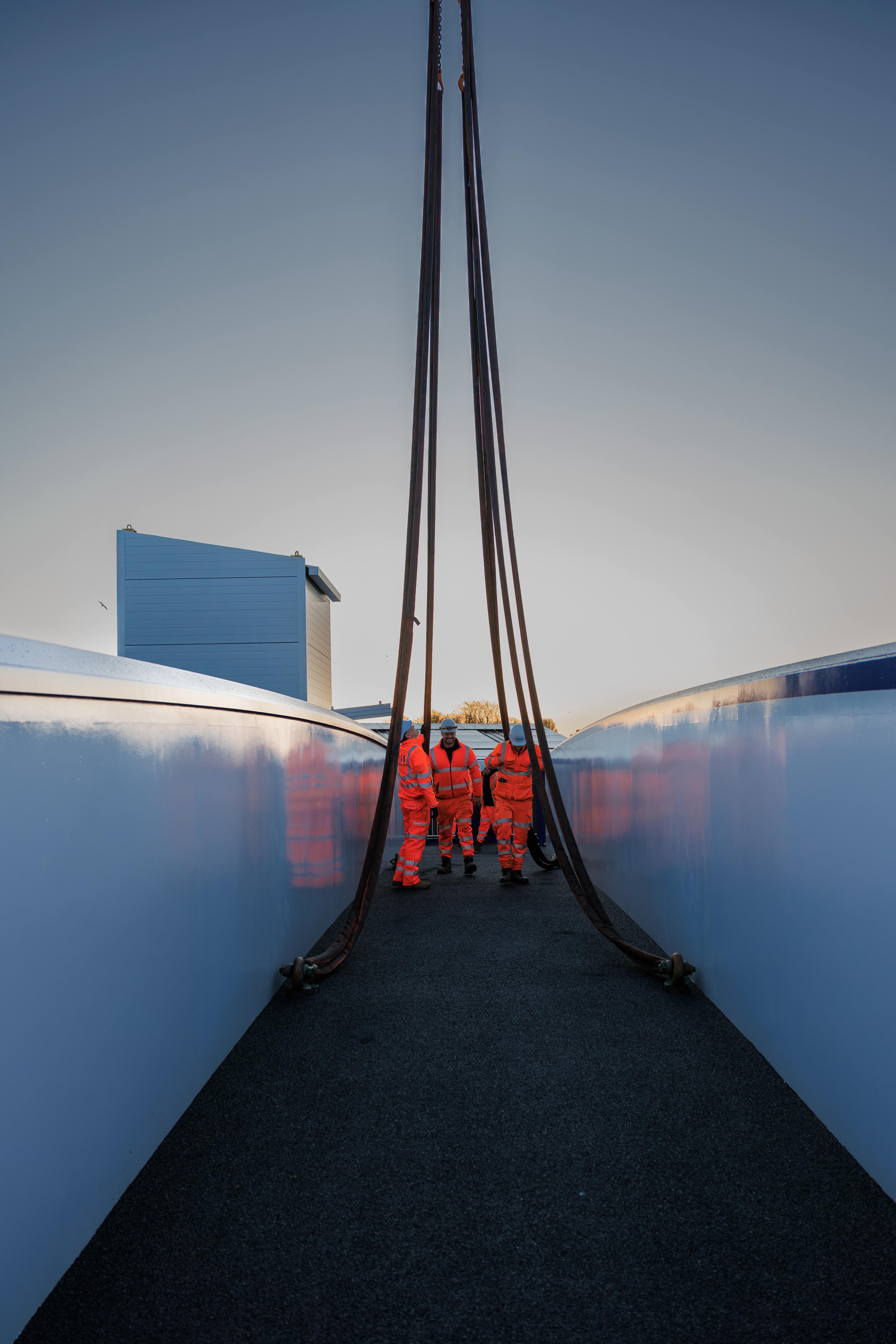 The installation was completed using a 500-tonne crane and a 110-tonne crane to lift the superstructure into place.