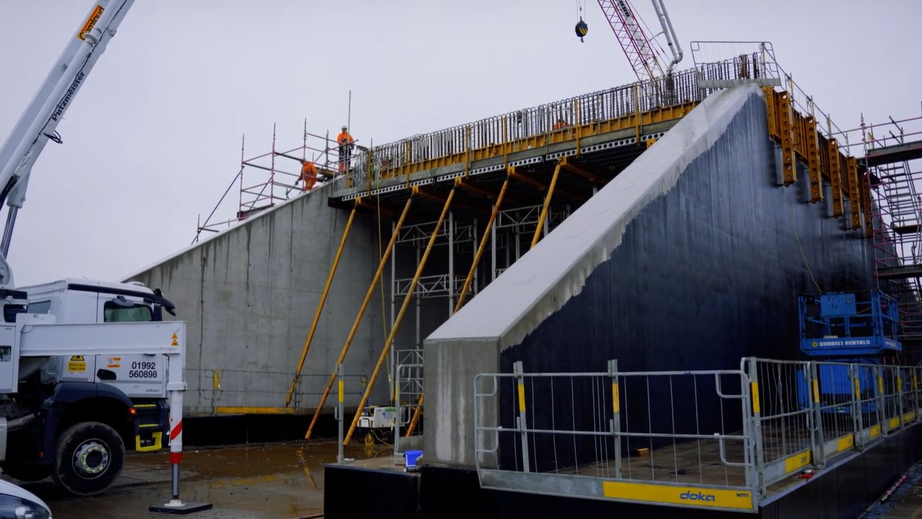Work began in summer and has progressed on schedule. The bridge is now fully cast with around 1,860 tonnes of concrete, giving the bridge its shape.