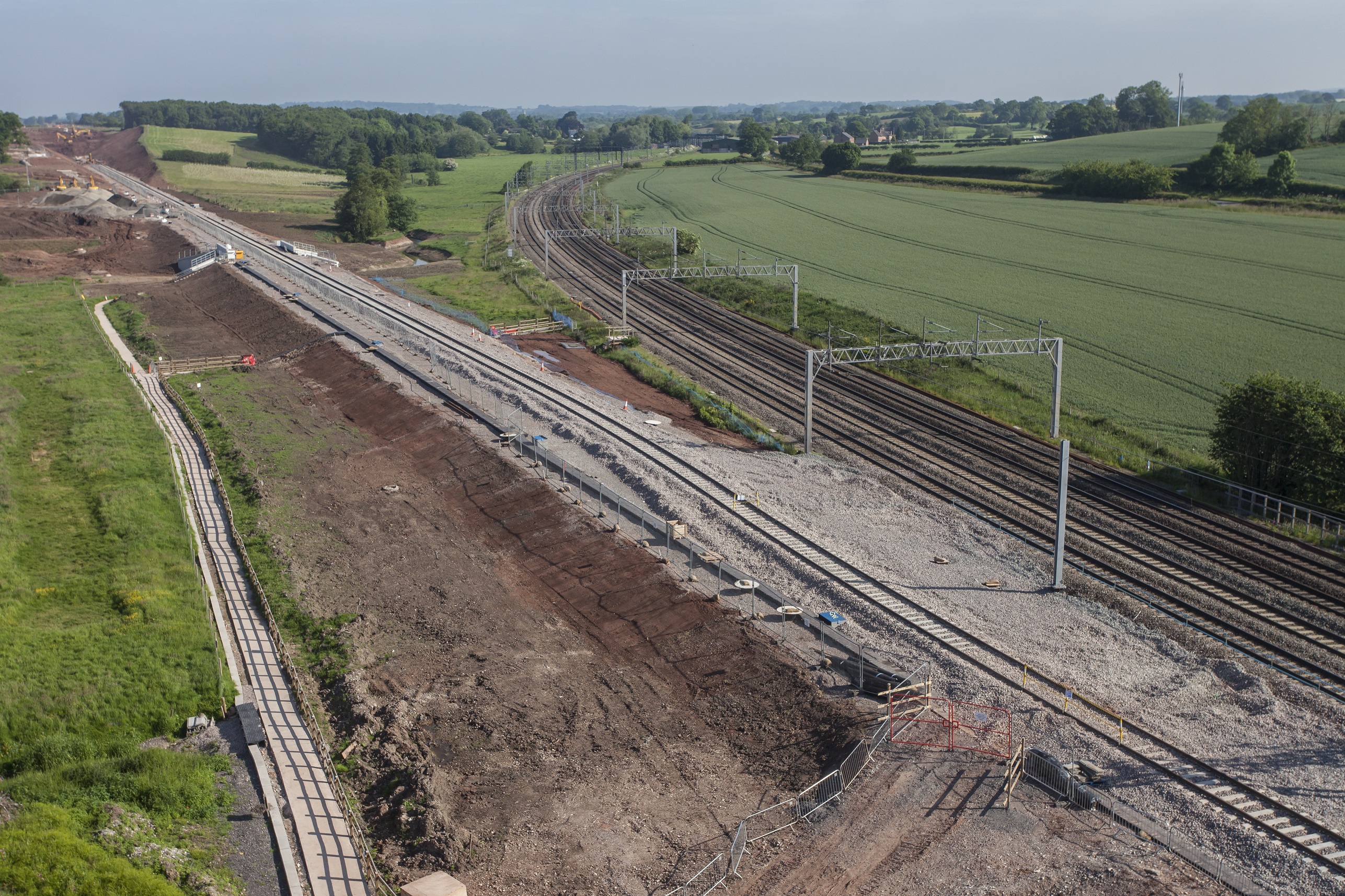 The alliance has also recently completed a road bridge over the existing Stafford to Crewe line so that 230,000m³ of earth (the equivalent of around 100 Olympic-sized swimming pools) can be carried within the site to create embankments, rather than using local roads.
