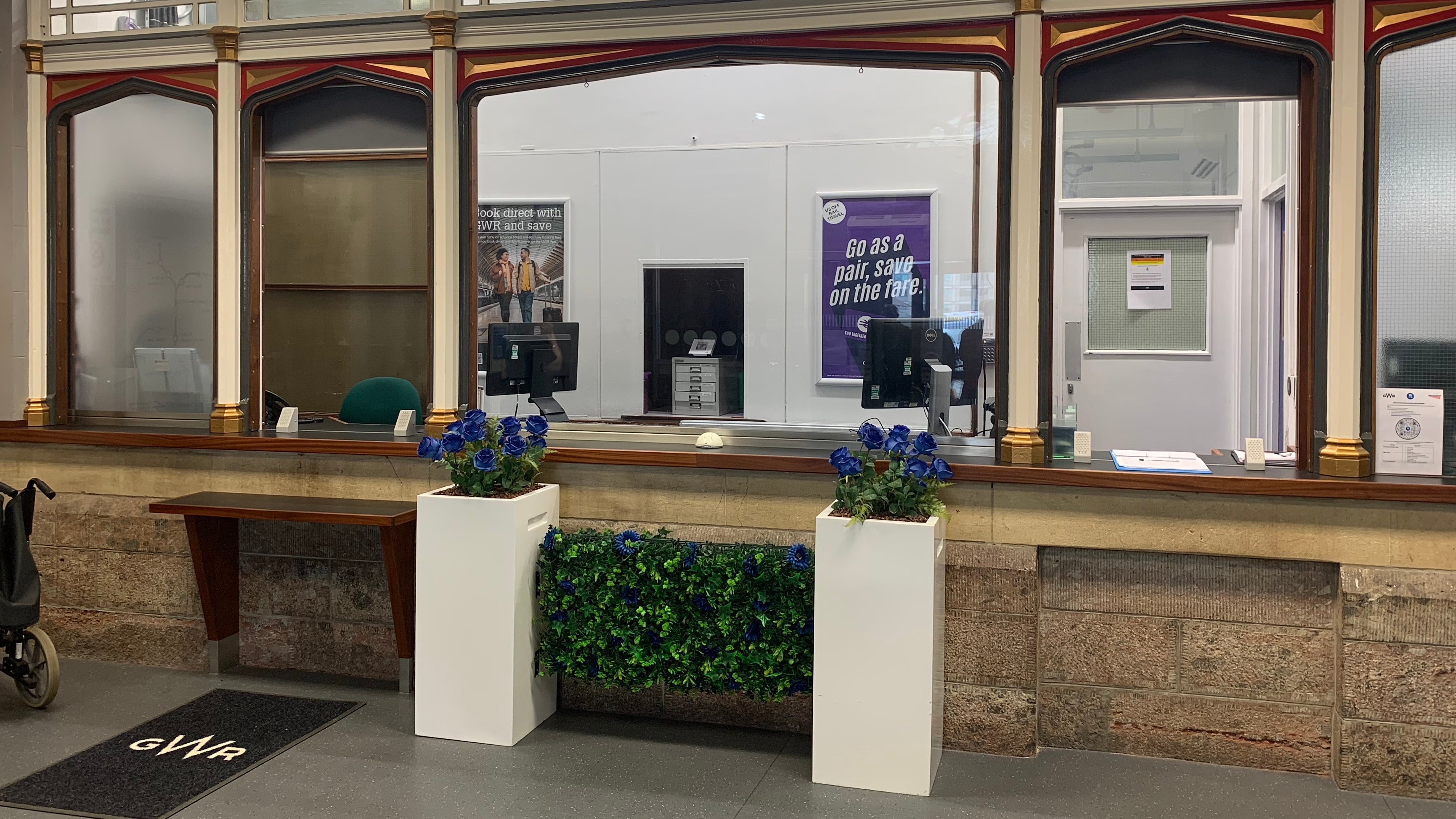 The new reception, near the station entrance, is managed by staff from Great Western Railway (GWR) and replaces the old information desk which was located on platform 3.