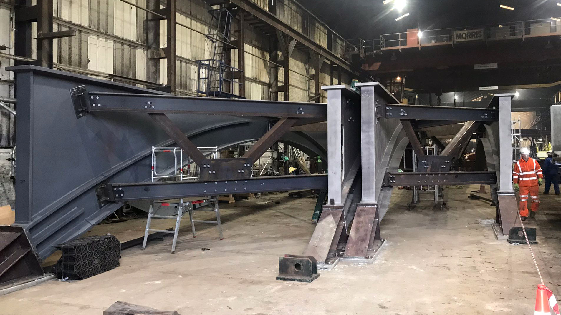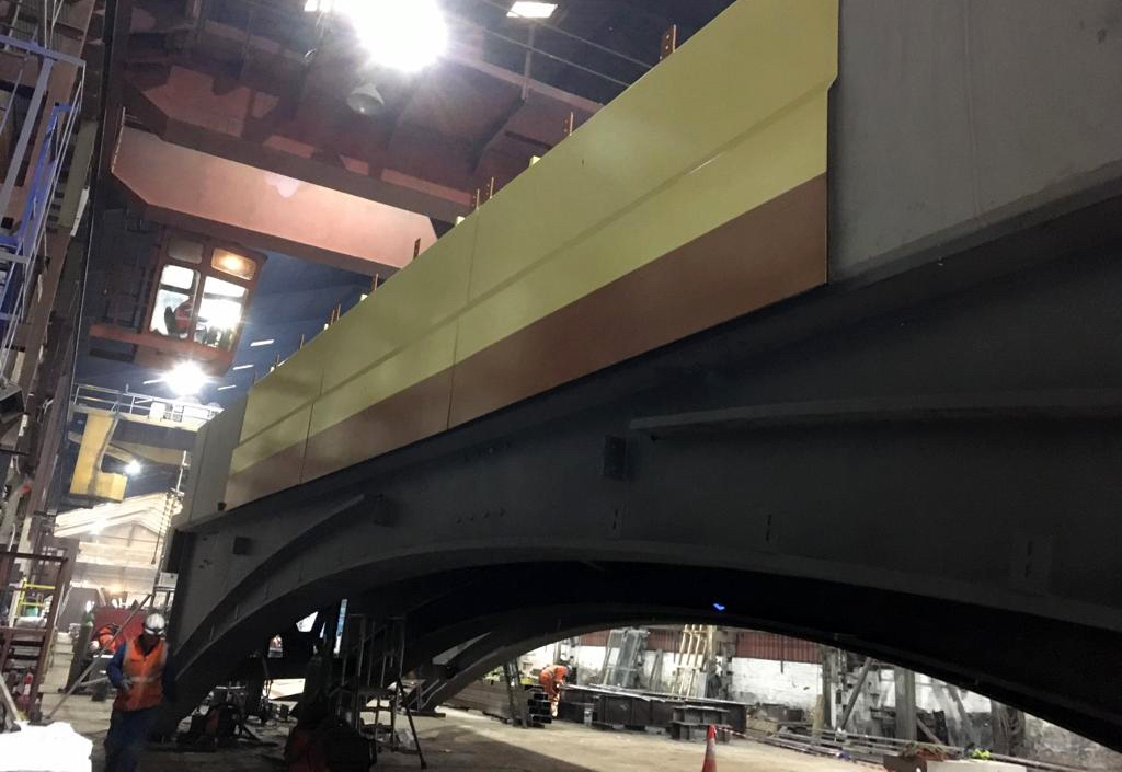 - the new steel ribs will be craned into place,