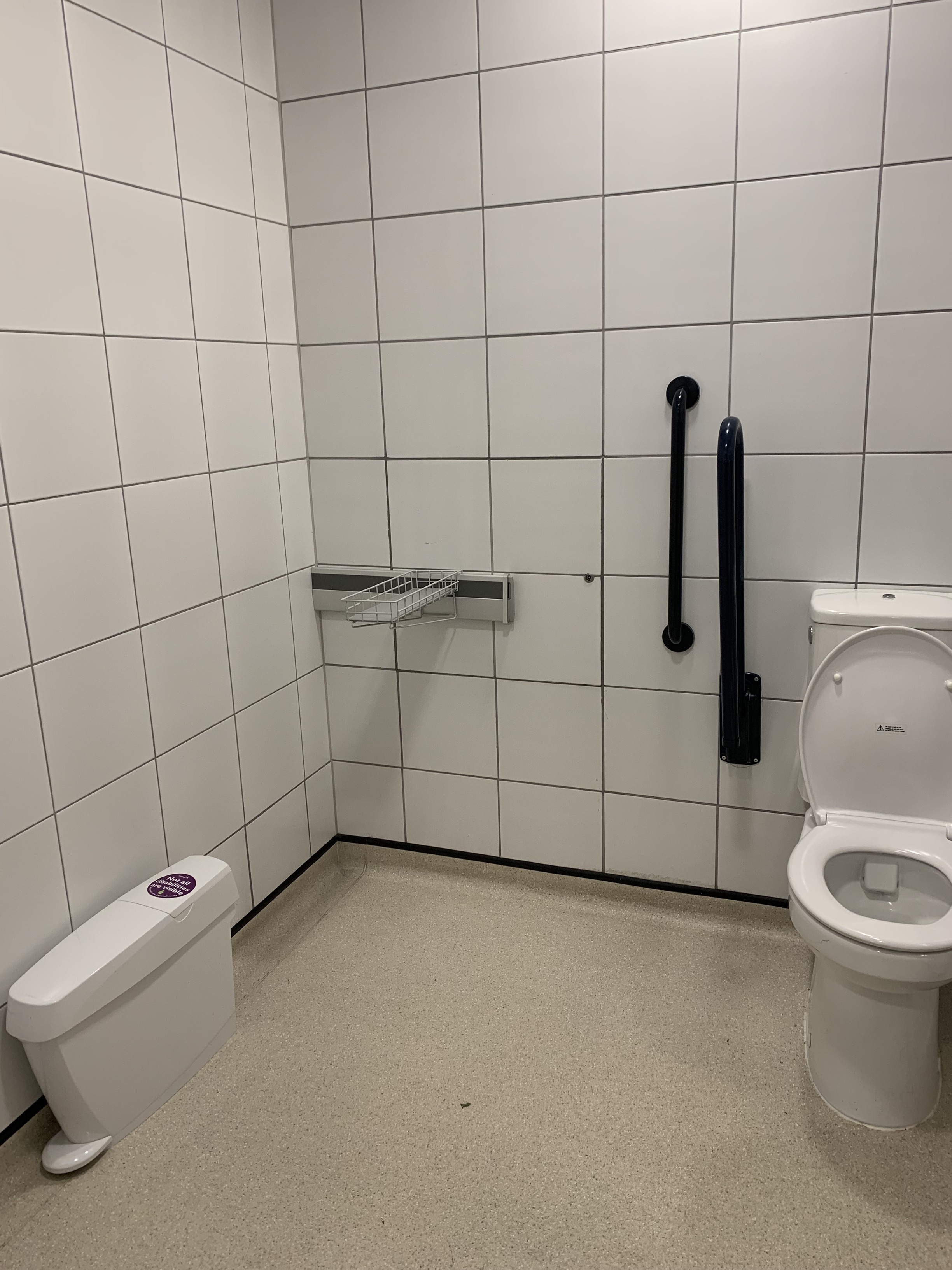 - A bin inside the cubicle to dispose of used stoma bags discreetly, and