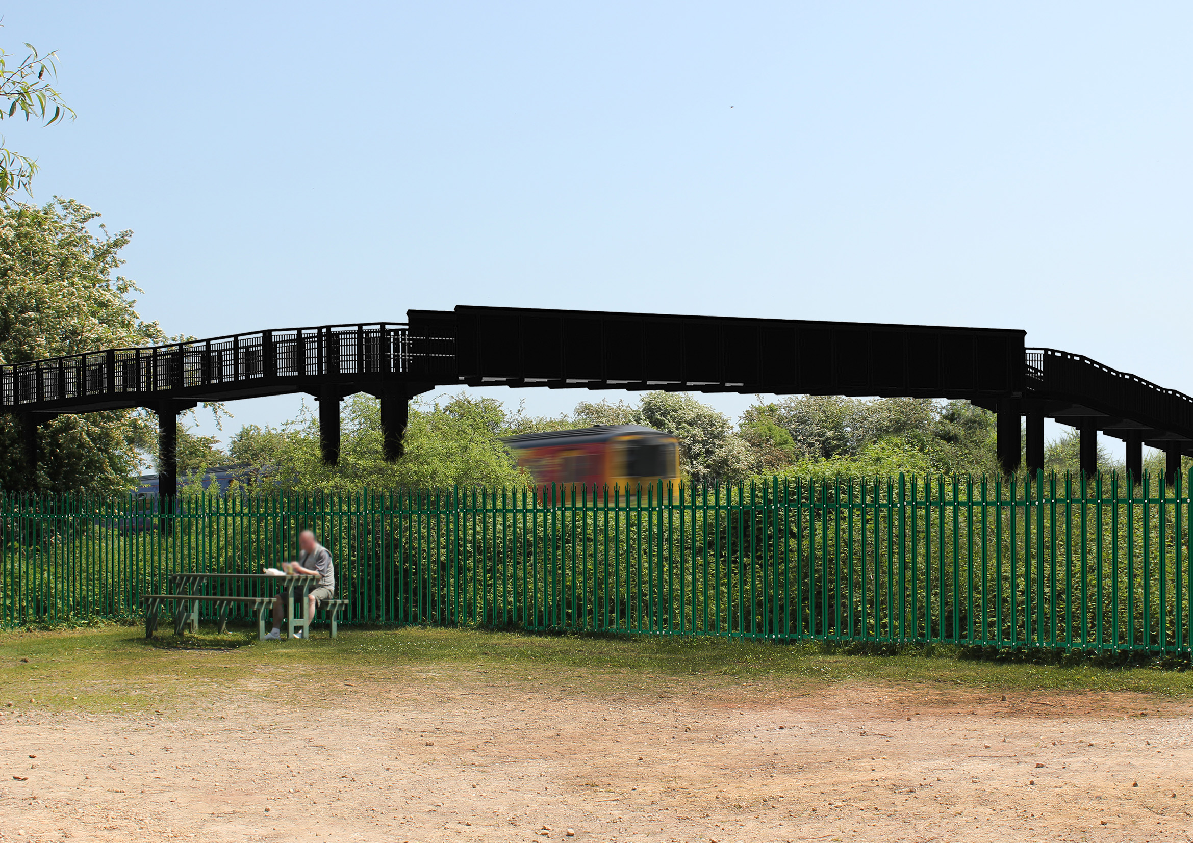 The new bridge will be cater for pedestrians, cyclists and horse riders and will be ramped for those with additional access needs and pushchairs. The bridge will be painted black and will only be visible to the paths immediately next to it.