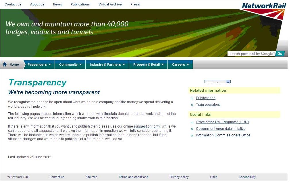 Network Rail underlined its commitment to greater transparency today with the unveiling of a new information portal on its website. For the first time people will have easy access to a range of information about Britain’s rail infrastructure operator. Categories of information include: