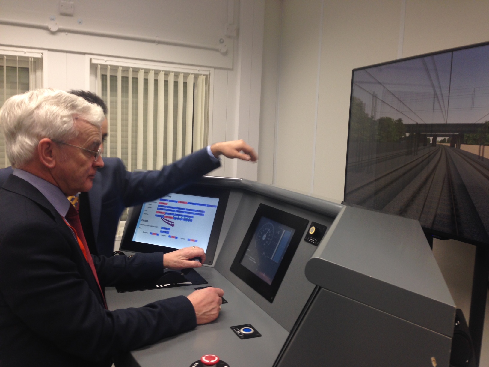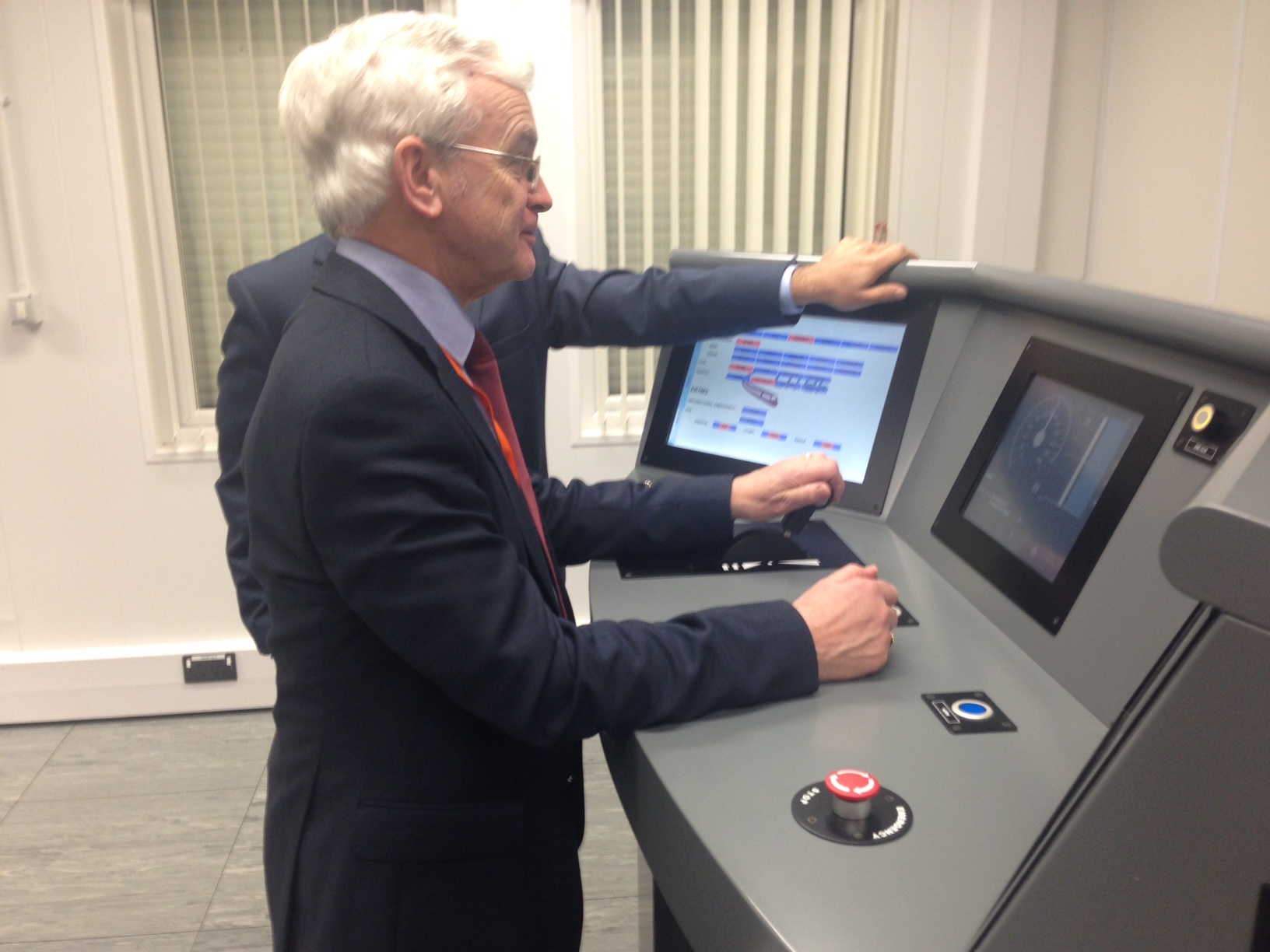 After a technical briefing both parliamentarians accepted an invitation to use Hitachi’s ETCS driving simulator to experience first-hand how trains will be operated in future.