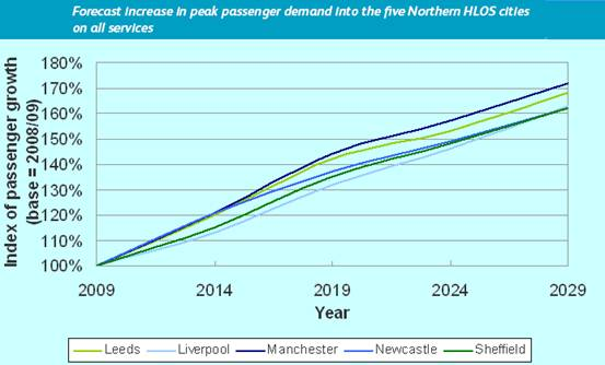 The number of passengers travelling into between the major towns and cities of the north is predicted in the RUS to grow significantly over the next ten and twenty years.