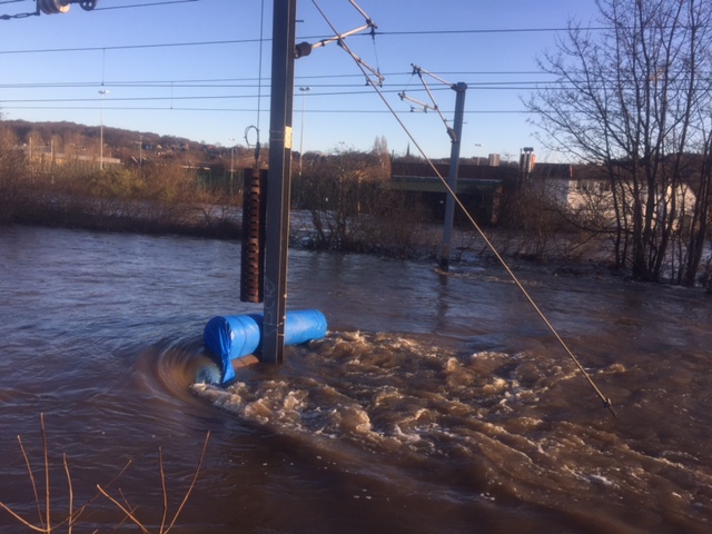 Additional members of Network Rail’s orange army have been drafted in to repair damage to the railway and to assess the condition of around 50 bridges and viaducts across affected areas – but in a small number of locations the railway remains under several feet of floodwater. Only once the water levels have receded will our engineers be able to assess the extent of any damage and carry out repairs.