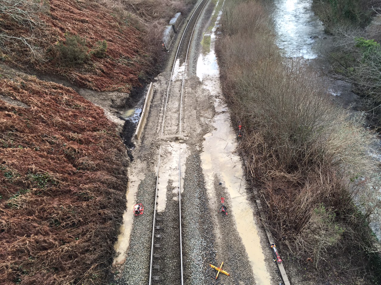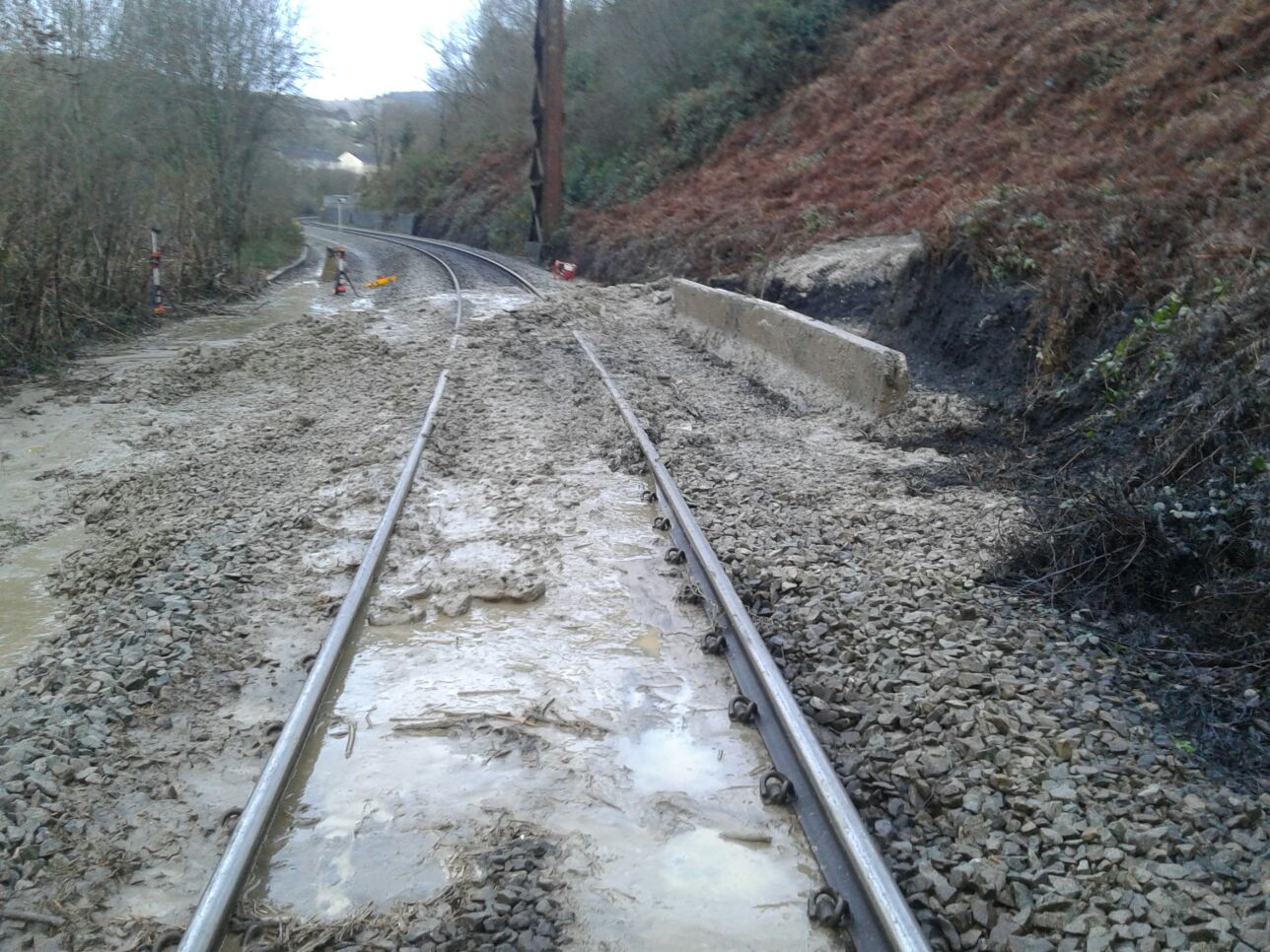 Extremely heavy rain on Sunday caused a landslip at Dinas Rhondda, blocking the railway line. The line has been closed between Porth and Treherbert while engineers work to remove over 150 tonnes of debris from the track and make the area safe for trains.