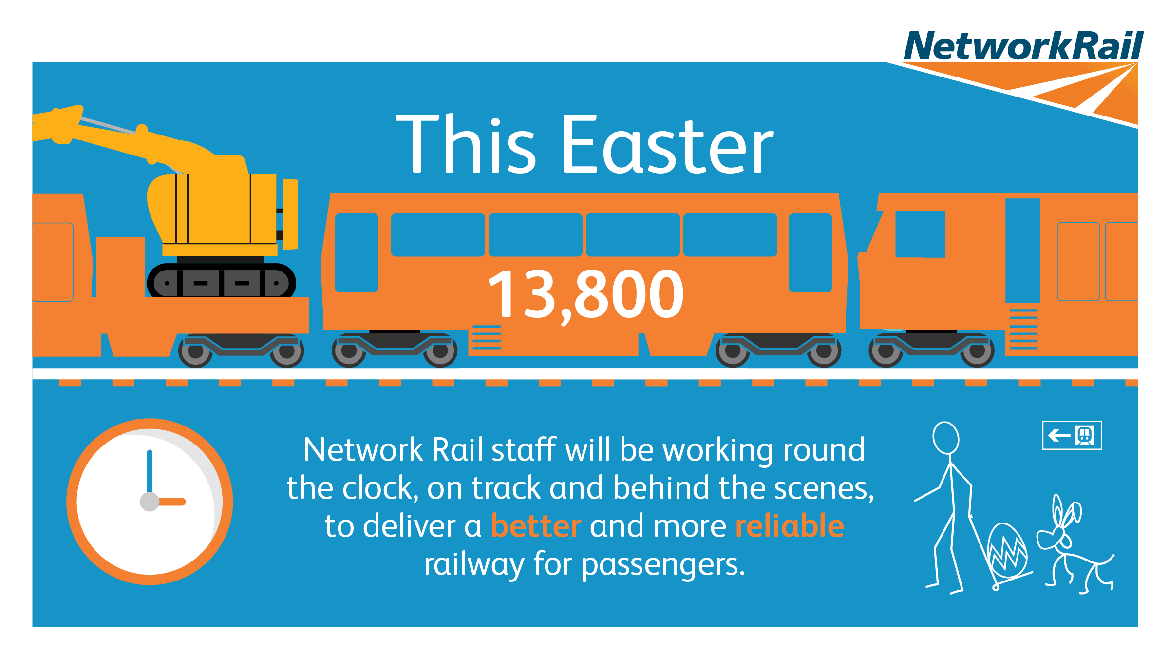 Network Rail today warned of major changes to train passengers’ journeys over the Easter and early May bank holiday weekends.
