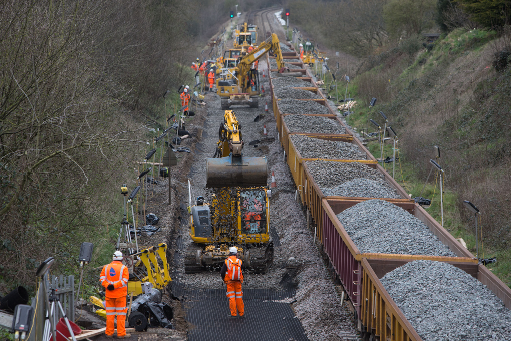 - The installation of 10,000 tons of ballast (the stones under the track)