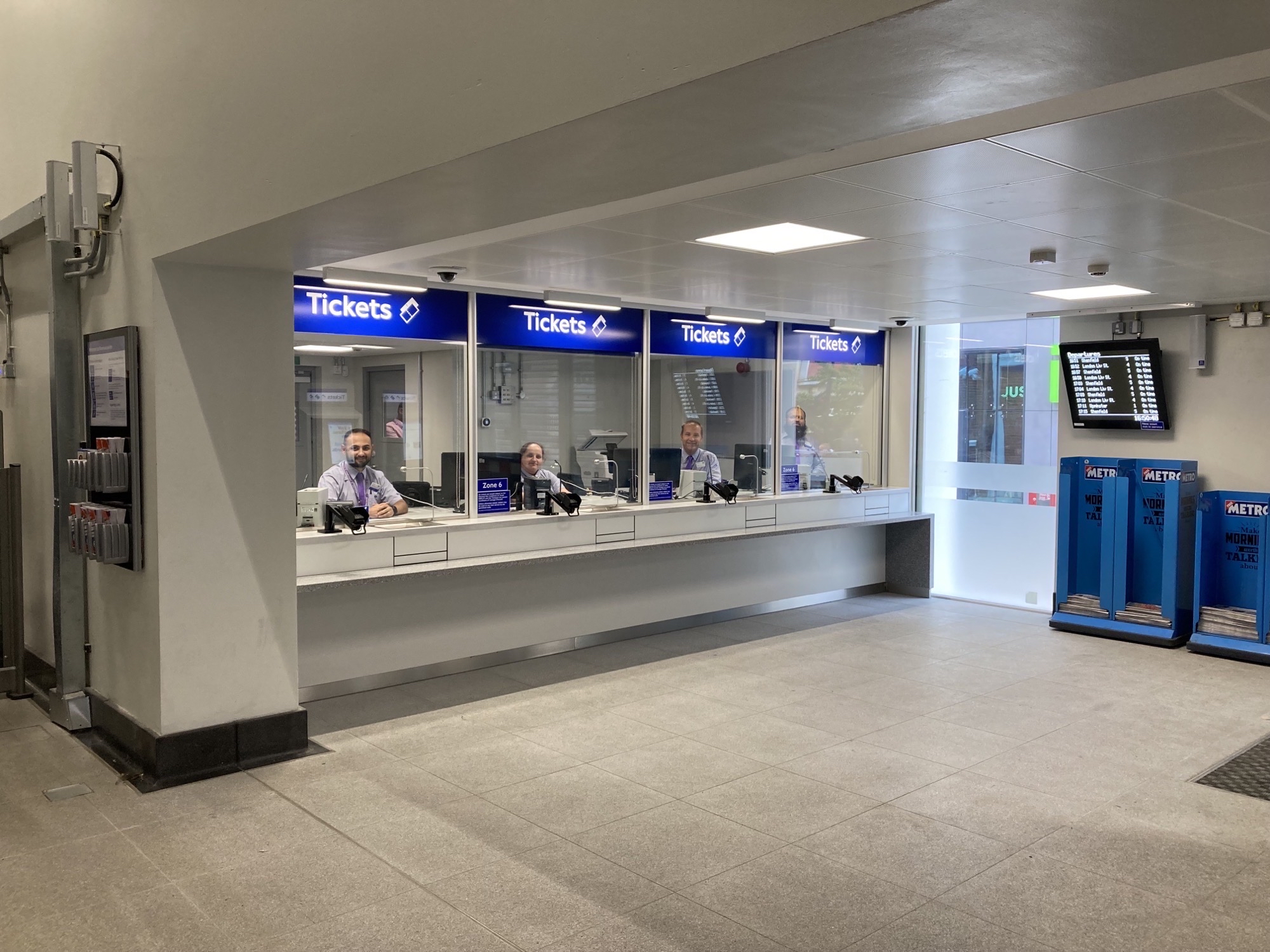 The staffed ticket office, originally on the mezzanine level, has been relocated to the ground floor. This provides better access to ticketing services and customer information, improving the overall operation of the station.