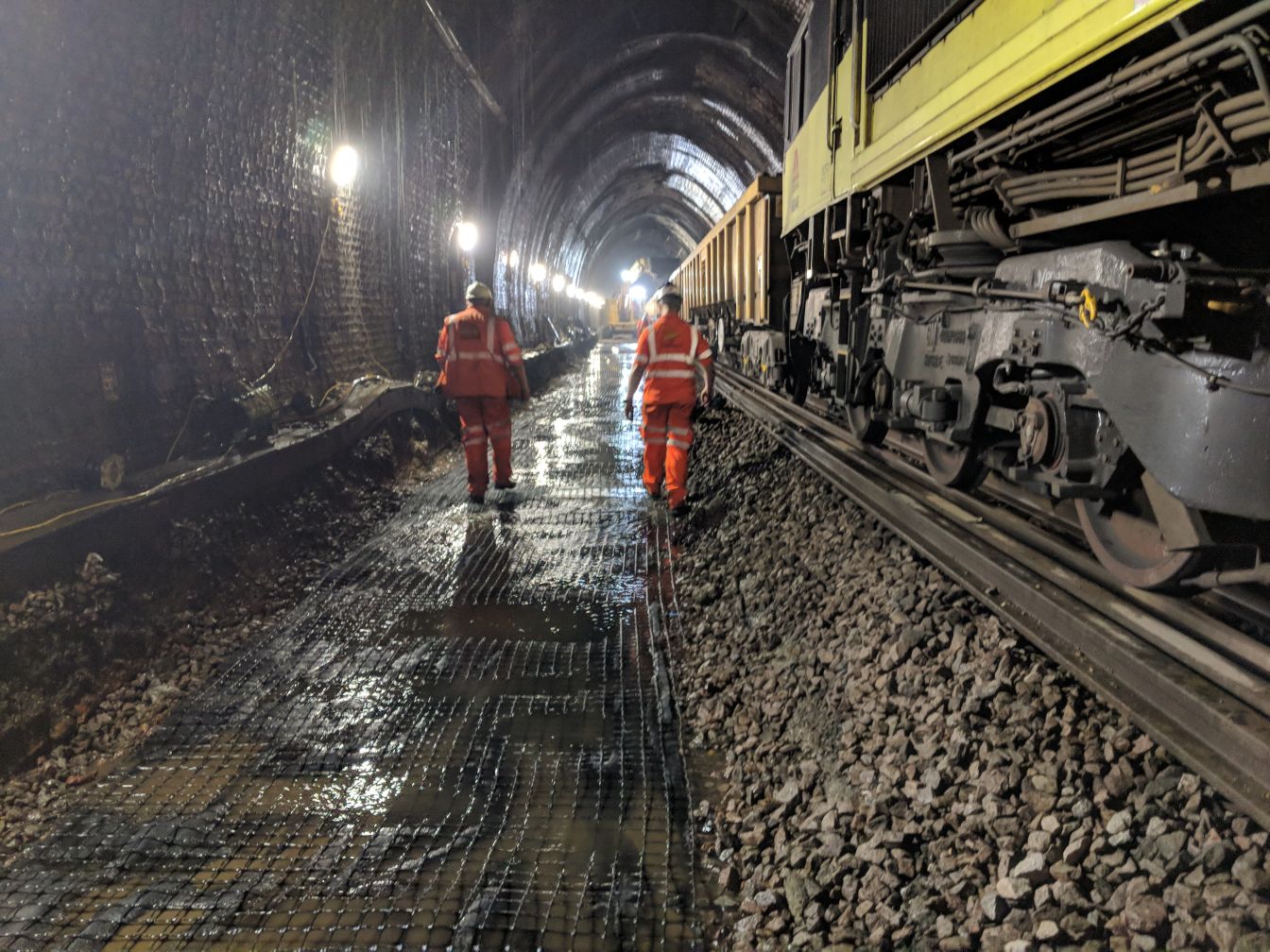 Other improvement works have also been carried out locally to maximise the use of line closures including structural improvements to adjacent tunnels, ballast cleaning, repairing small areas of worn track in more than 36 locations and the replacement of 700 yards of sleepers suffering from ‘concrete cancer’ degradation outside the southern end of the tunnel.