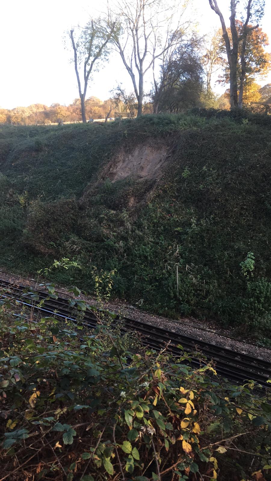 This is to allow repair work to take place on the embankment in question, so Network Rail engineers can remove the dislodged material as there is currently a risk of it continuing down the slope onto the track. There is currently a 20 mph speed restriction in place on this part of the network to make sure passengers and trains can move safely through the area.
