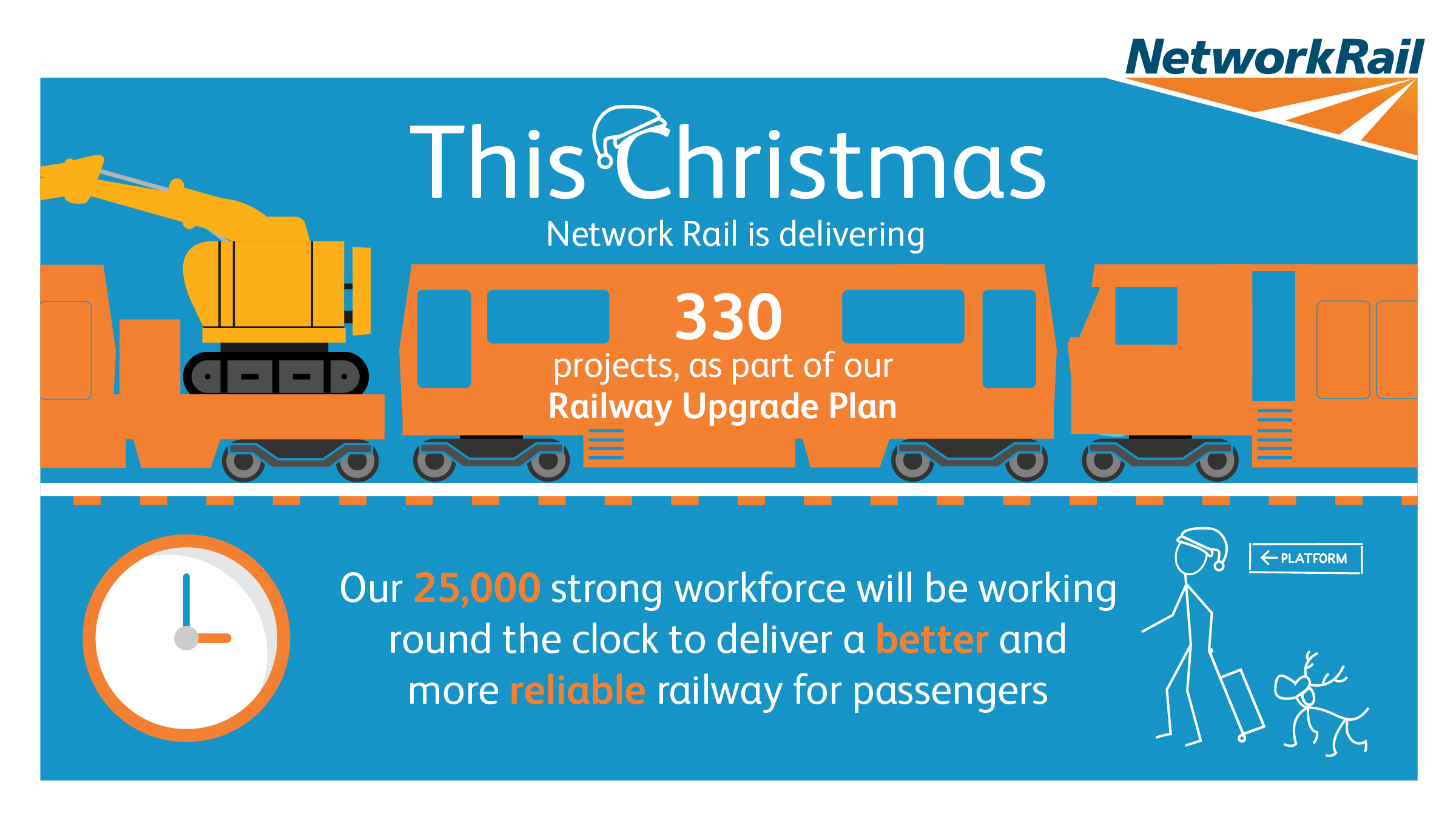 A 25,000-strong workforce will work around the clock this holiday season to keep the railway open and deliver more than 330 projects as part of a £148m investment across Britain over the Christmas and New Year holiday period.