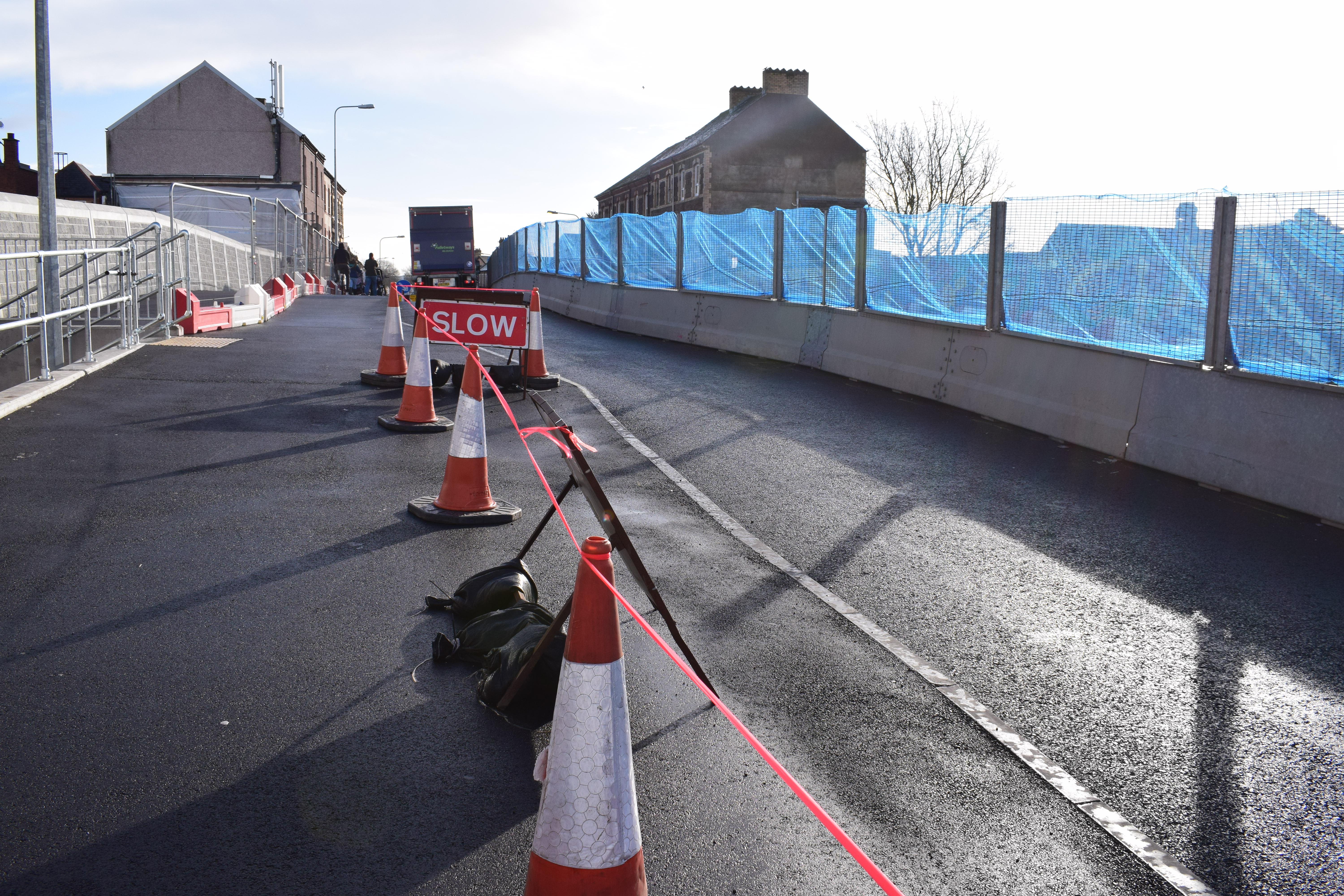 The carriageway carrying traffic from Splott to Adamsdown is closed to all traffic and pedestrians from 4 February. Temporary two-way traffic lights on the bridge will allow traffic to keep moving using the other side of the bridge.