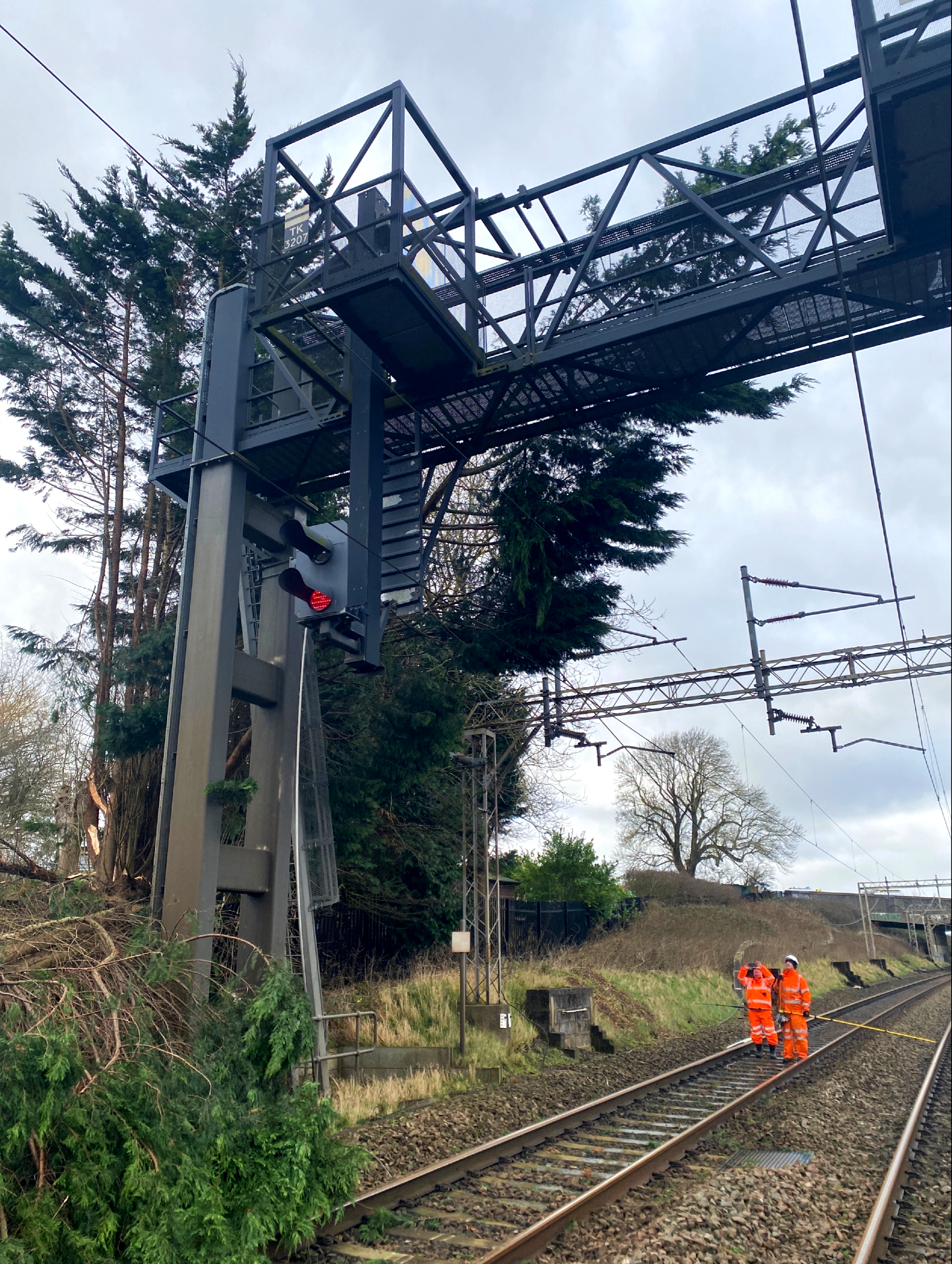 - Fallen trees damaging overhead lines at Linslade on the West Coast main line