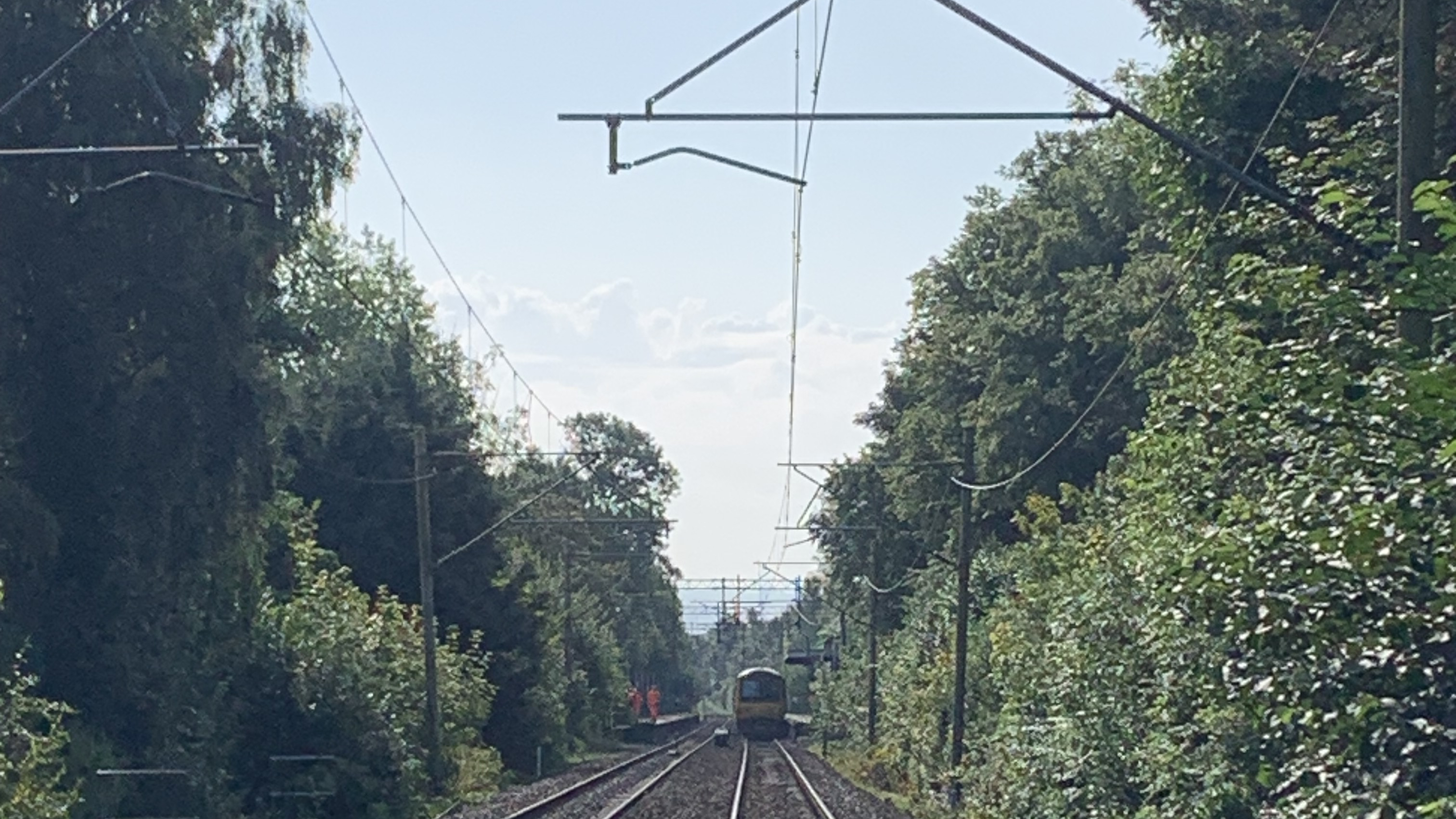 Network Rail engineers are working as fast as they can to fix the 25,000-volt overhead cables near Bramhall, Stockport, after they came down last night (Wednesday 31 July).
