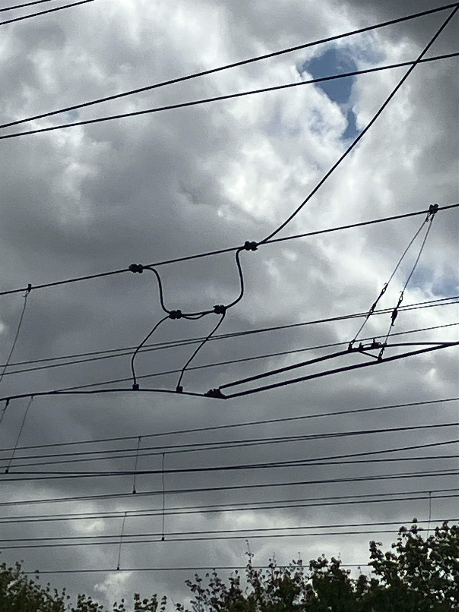 Overhead line equipment – or OLE – is the name for the overhead wires and other equipment you can see on electrified railway lines. It carries 25,000 volts of electricity to power electric trains.