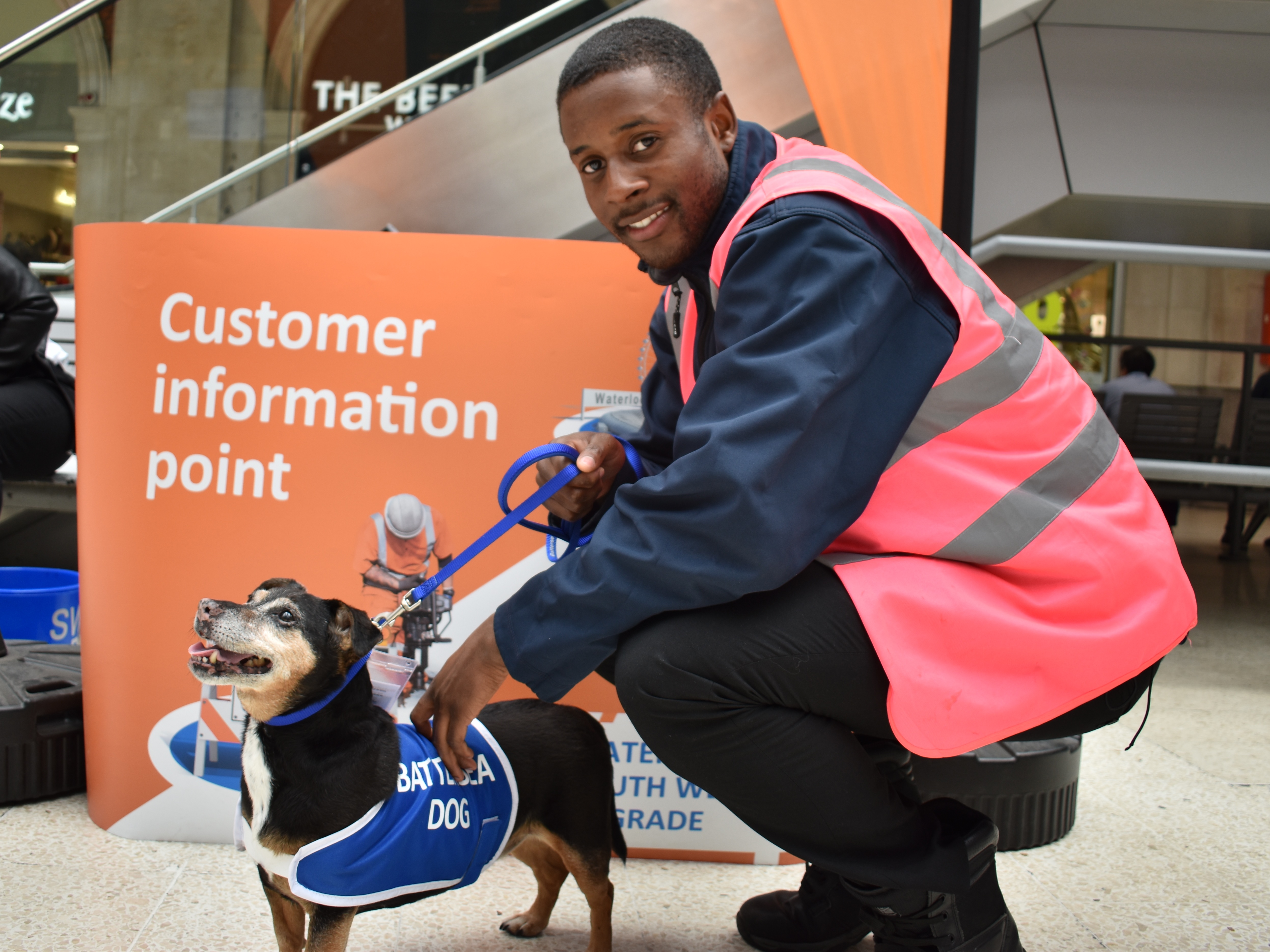 Two ambassa-dogs from London's Battersea Dogs Home joined staff at Waterloo this morning (22 August, 2017) in warning passengers of upcoming disruption to their journeys from 24-28 August, as three weeks of upgrade work at London's busiest station reach their climax this weekend.