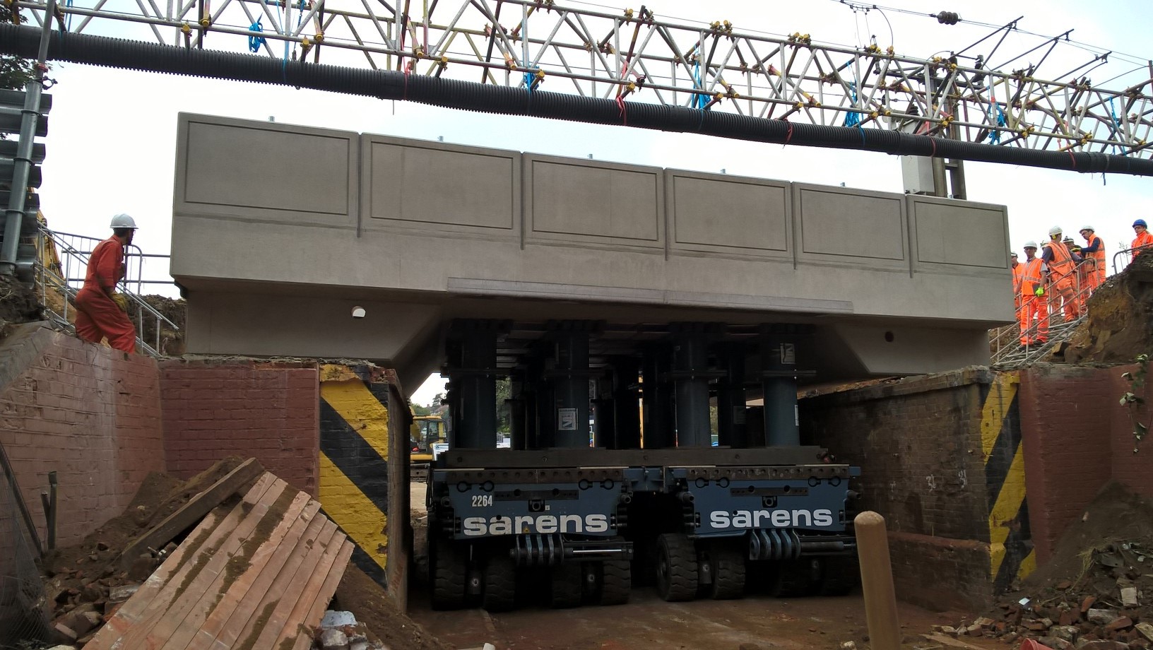 Photos have captured the moment a new railway bridge was rolled into place in Norwich, using similar self-propelled modular transporter machines that transport NASA rockets.