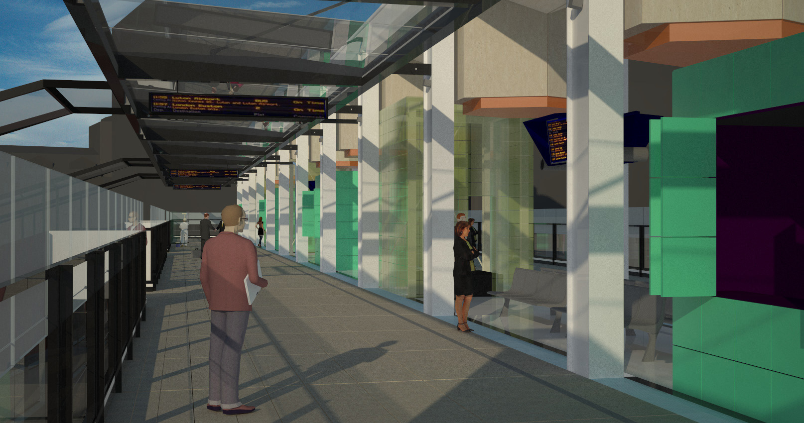 The footbridge has been designed to complement the main station building and surrounding area. There will be customer information and retail facilities down the central spine of the bridge. In phase one of the works, the bridge will be open to ticket holders only. However in phase two, which is provided for in the wider master plan, the bridge will be altered to create two separate halves – one for ticket holders to get to the lifts and platforms, the other for members of the public to cross the railway thereby linking businesses and communities on the east and west.