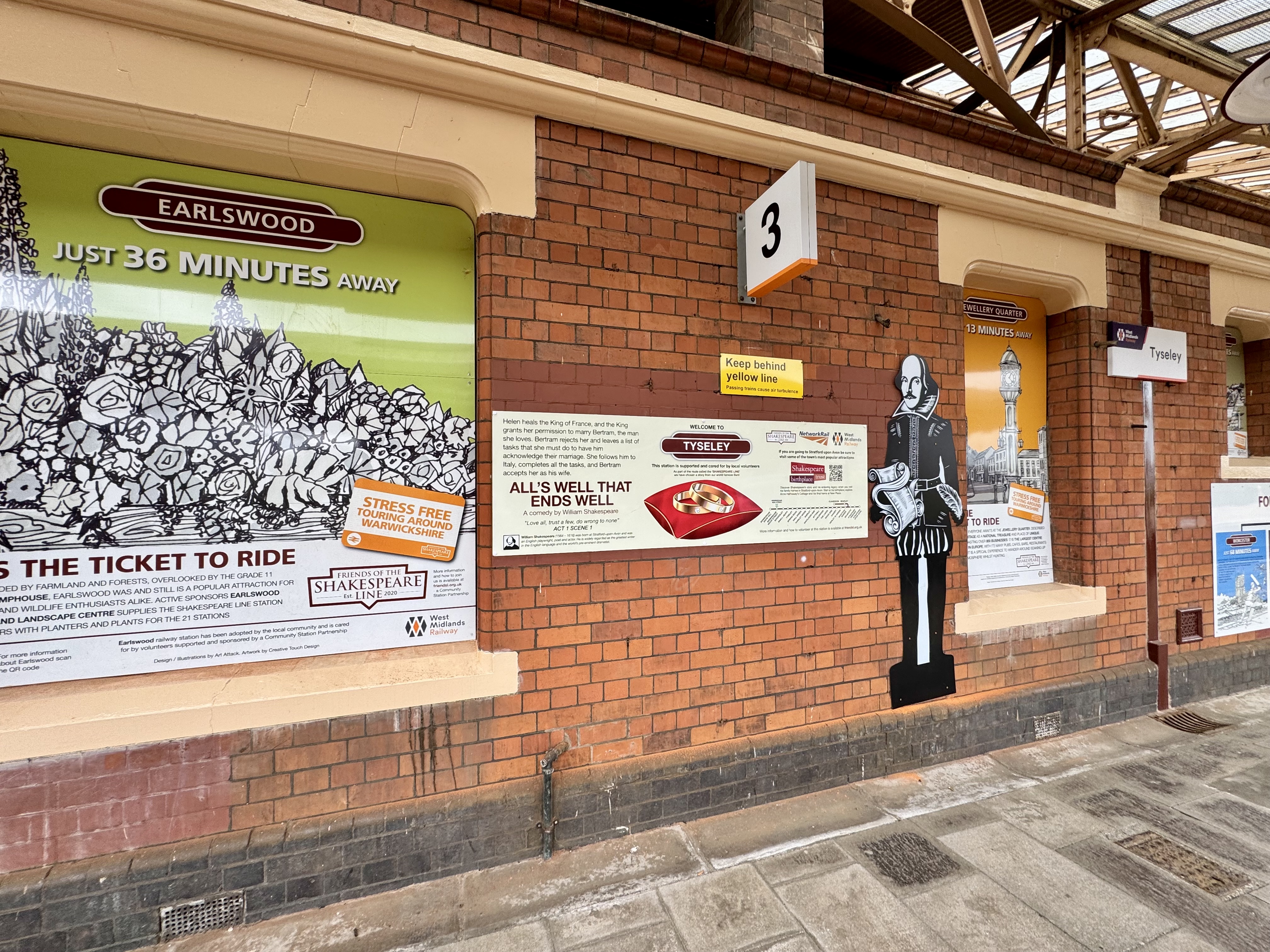 Some of the stations and plays connected along the route include Yardley Wood and Twelfth Night, Wood End and The Merchant of Venice, and Wilmcote and The Taming of the Shrew.