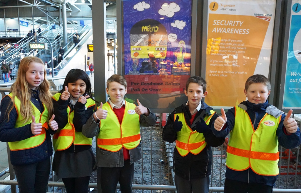 Pupils from Bramley St Peter’s Church of England School, near Leeds, have designed special safety posters for the festive period, which are now on display at Leeds station.