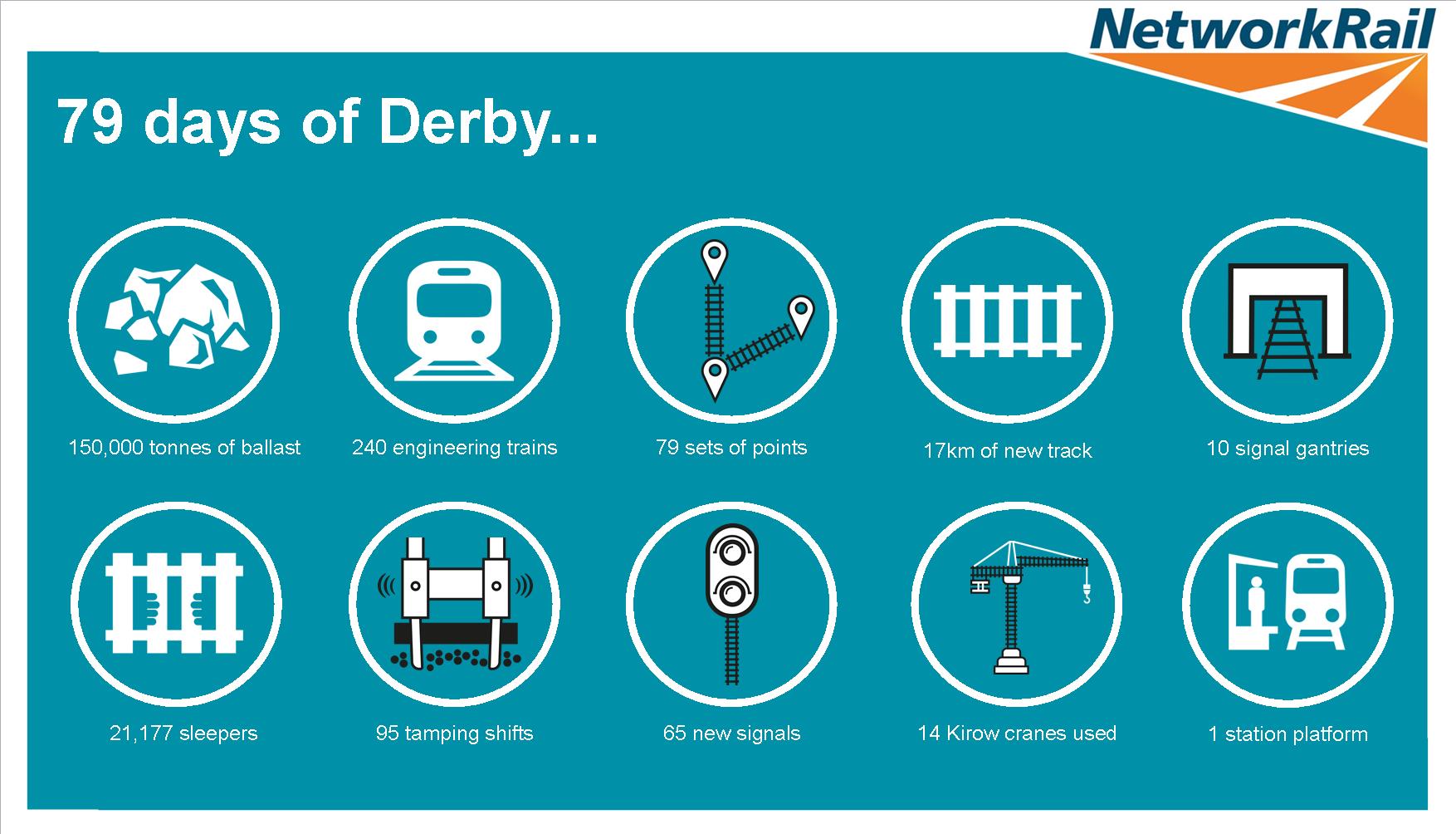 The project has been delivered in partnership between Network Rail, East Midlands Trains and CrossCountry who have worked together to keep passengers moving throughout the last 79 days. The partnership has put passengers first. Trains have been running for 78 of the 79 days of the work; a huge and a carefully planned rail replacement bus operation has been in place, with 5,494 services provided. In addition, discounted fares and compensation has been provided for passengers on specified routes and dates while more than 32,000 free treats have also been handed out.
