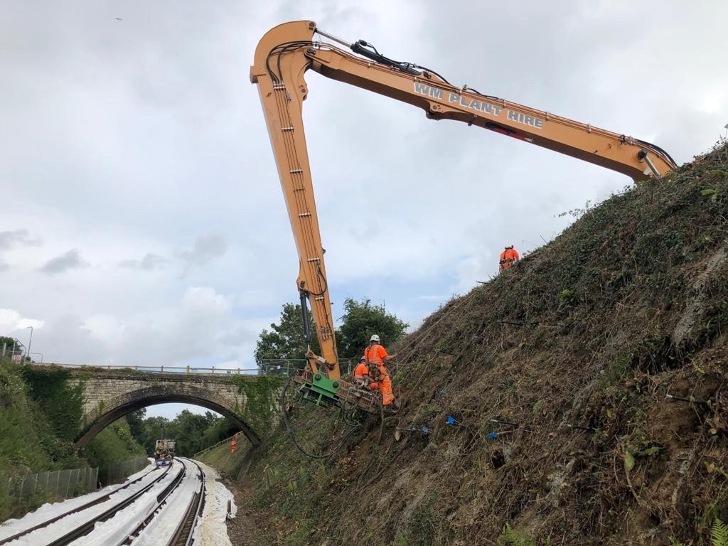 Network Rail and contractors BAM have been repairing and reinforcing the steep sides of a cutting near Bearsted, which was prone to landslips and rock falls. A rock fall even took place while the work was ongoing, underlying the importance of the project.