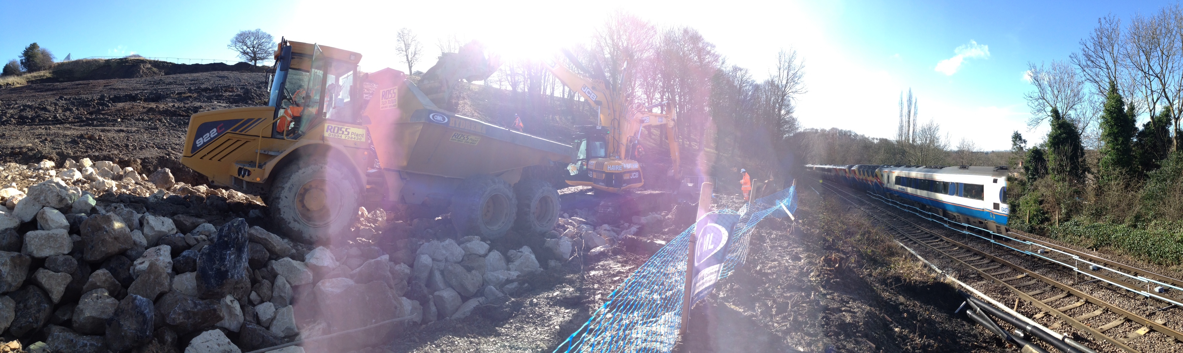“The work completed so far has prioritised making the track safe so that trains can run but work to fully stabilise the hillside will continue for several months yet. Trains will run at a slightly reduced speed past the worksite but this will not significantly affect journey times.”