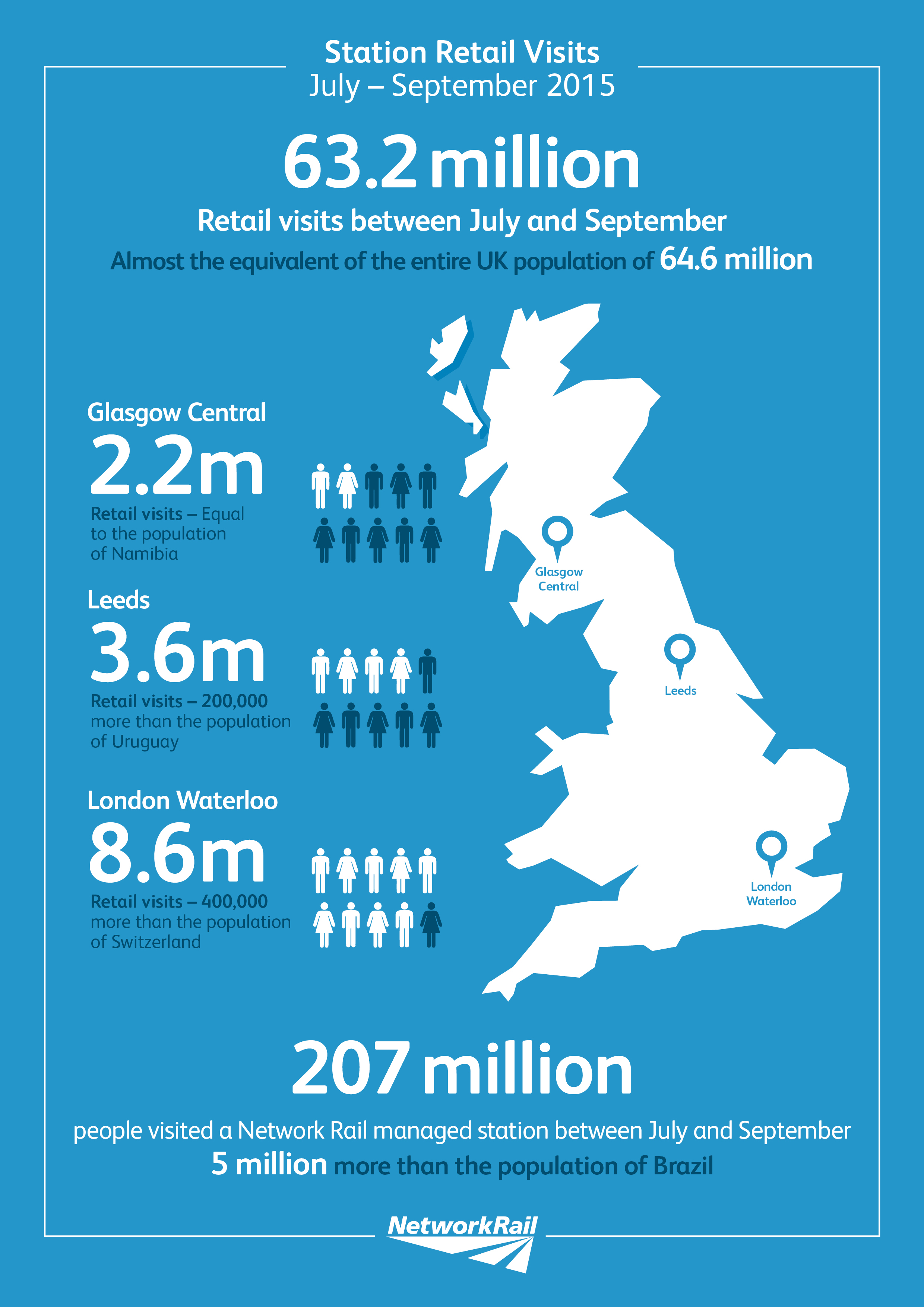 New retail sales results from Network Rail’s managed stations revealed that 63.2 million people – almost equivalent to the entire UK population – visited a station retailer between July and September, pushing up sales by 4.47% compared to the same period last year.