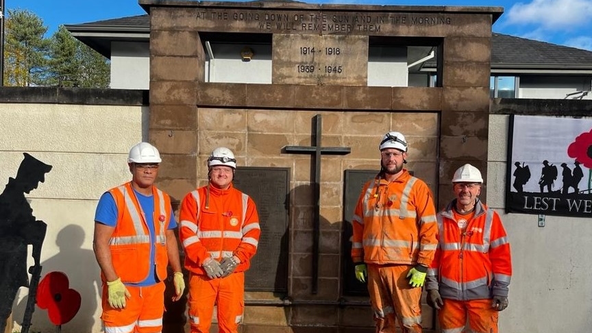 Network Rail engineers teamed up with colleagues from contractors AmcoGiffen to clean and restore two war memorials in Llanhilleth and Newbridge on the Ebbw Vale line ahead of Remembrance Sunday this weekend.