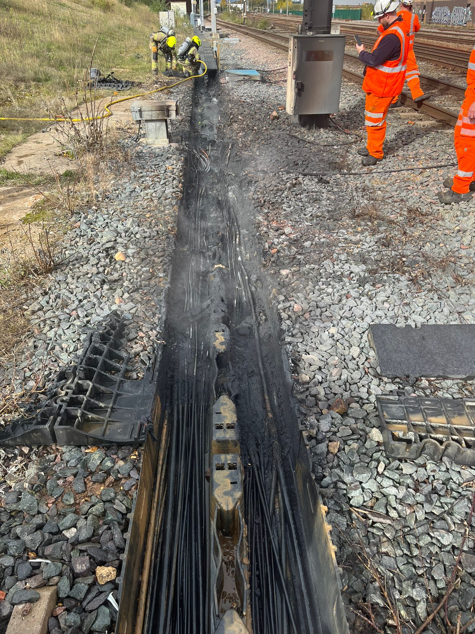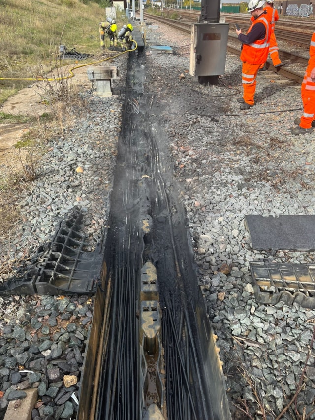 The fire damaged 25 individual telecommunications and signalling cables along a 20-metre-long section of railway.