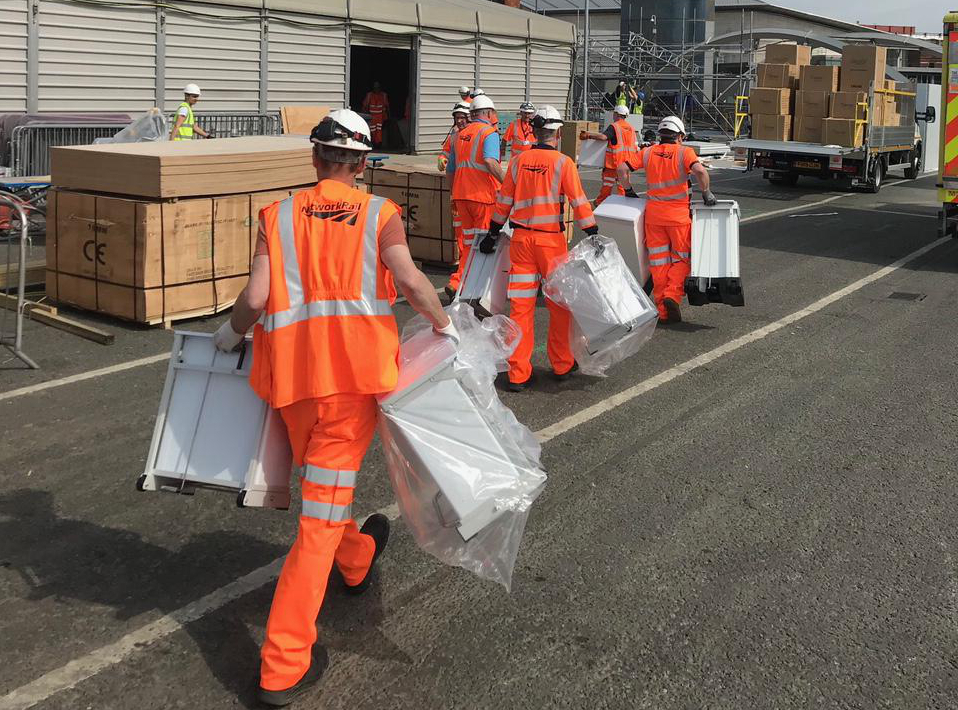 Volunteers from across Network Rail’s Supply Chain Operations (SCO) team in Route Services worked alongside the North West & Central works delivery team on the delivery of NHS Nightingale North West.