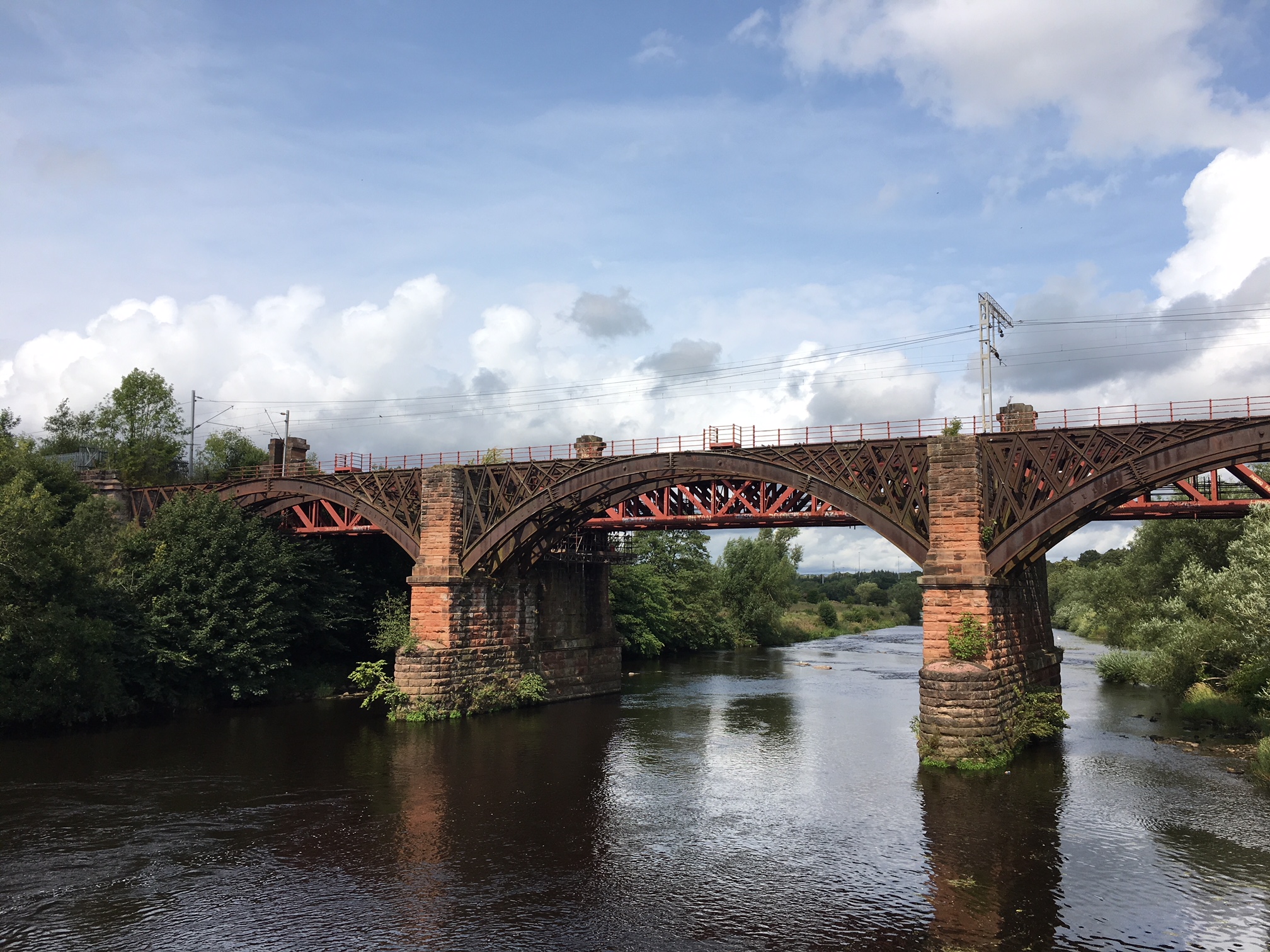 The three span, 90 metre, steel structure stands on three sandstone piers above the River Clyde near Uddingston and carries traffic on the strategically important West Coast Mainline, as well as local services.