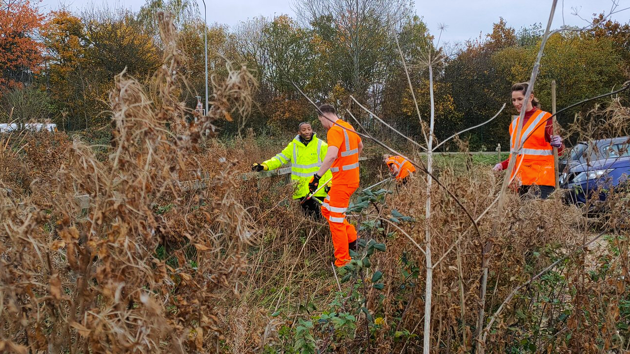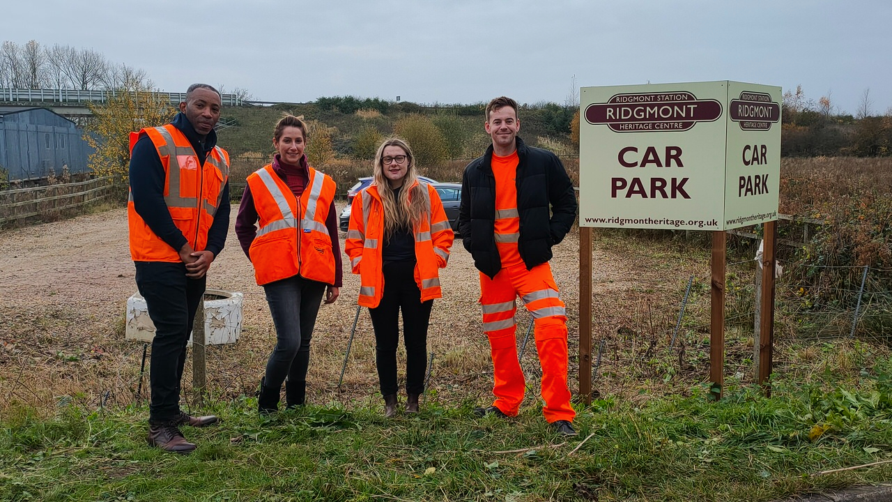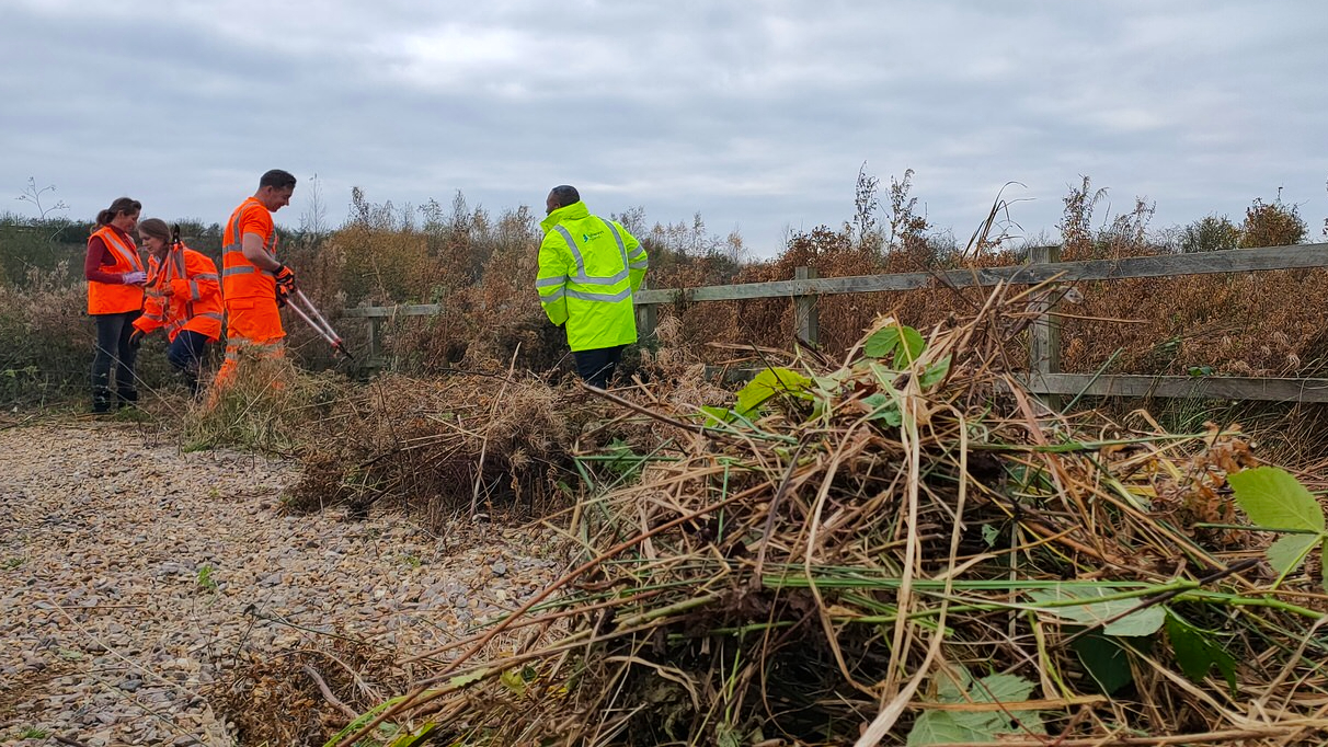 A six-strong team from Network Rail and the Marston Vale Community Rail Partnership (MVCRP) cut back undergrowth, removed rubbish and cleared debris in the station car park on Tuesday 16 November.