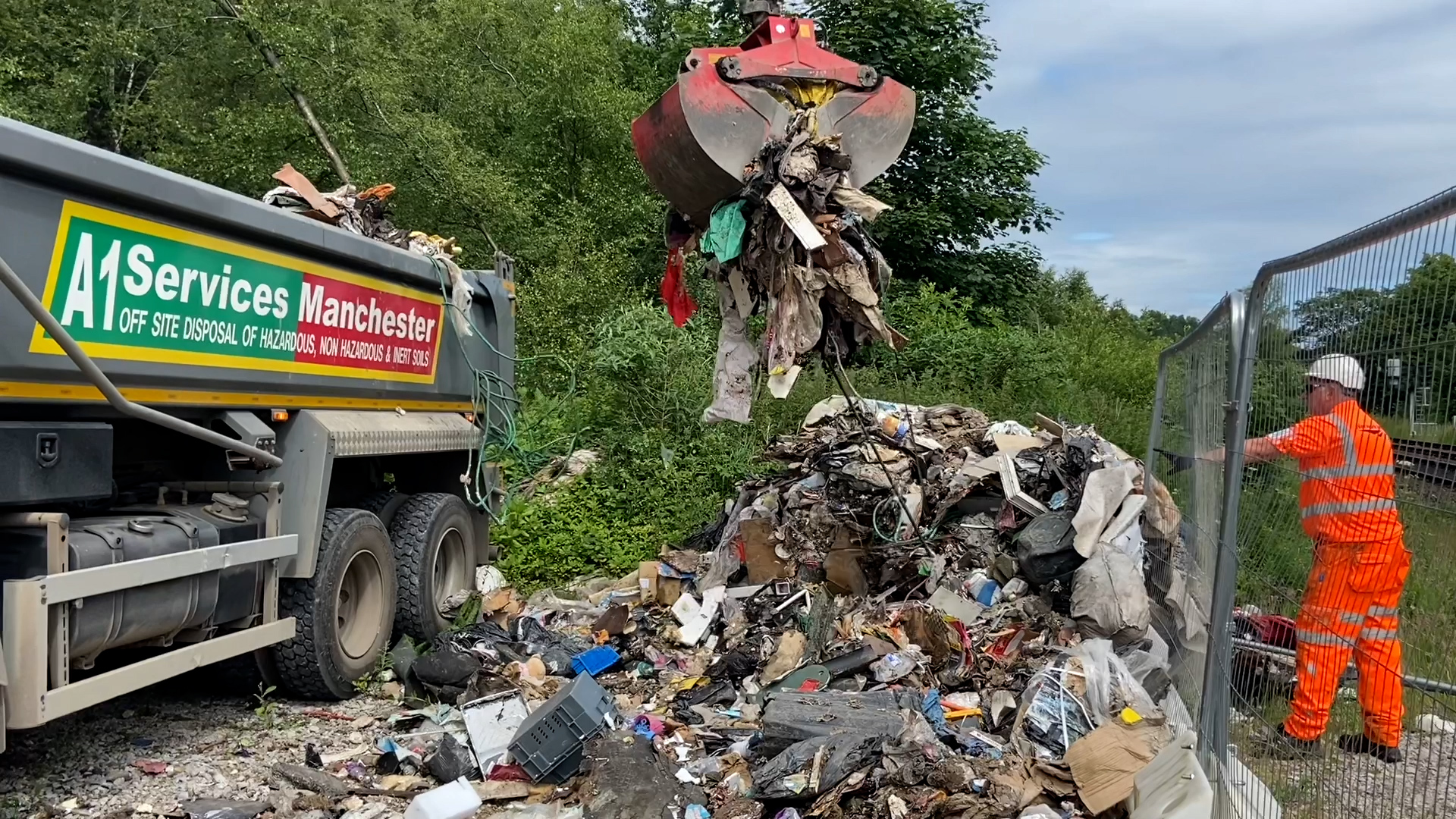 Several tonnes of rat-infested, stinking rubbish was left beside tracks in the village of Heyrod near Stalybridge.
