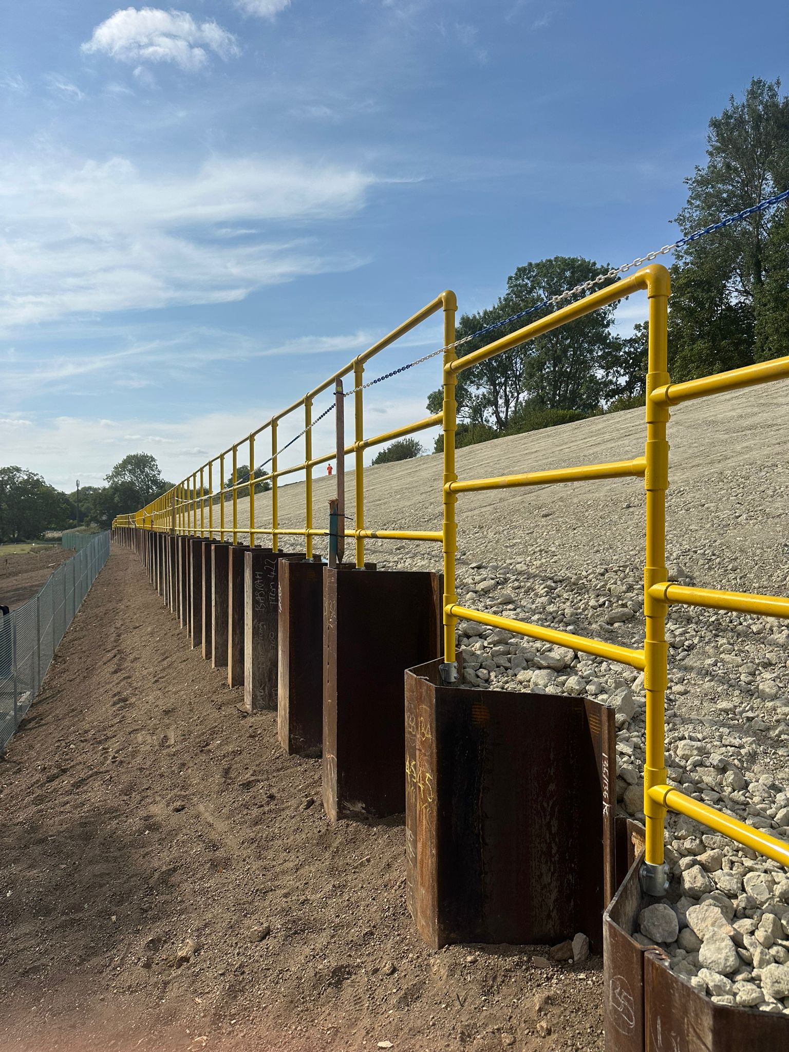 The railway embankment along this route has been strengthened with a 360-metre-long steel wall either side of the track, and further strengthened with 226 soil nails, each 9-metres-long and driven into the ground.