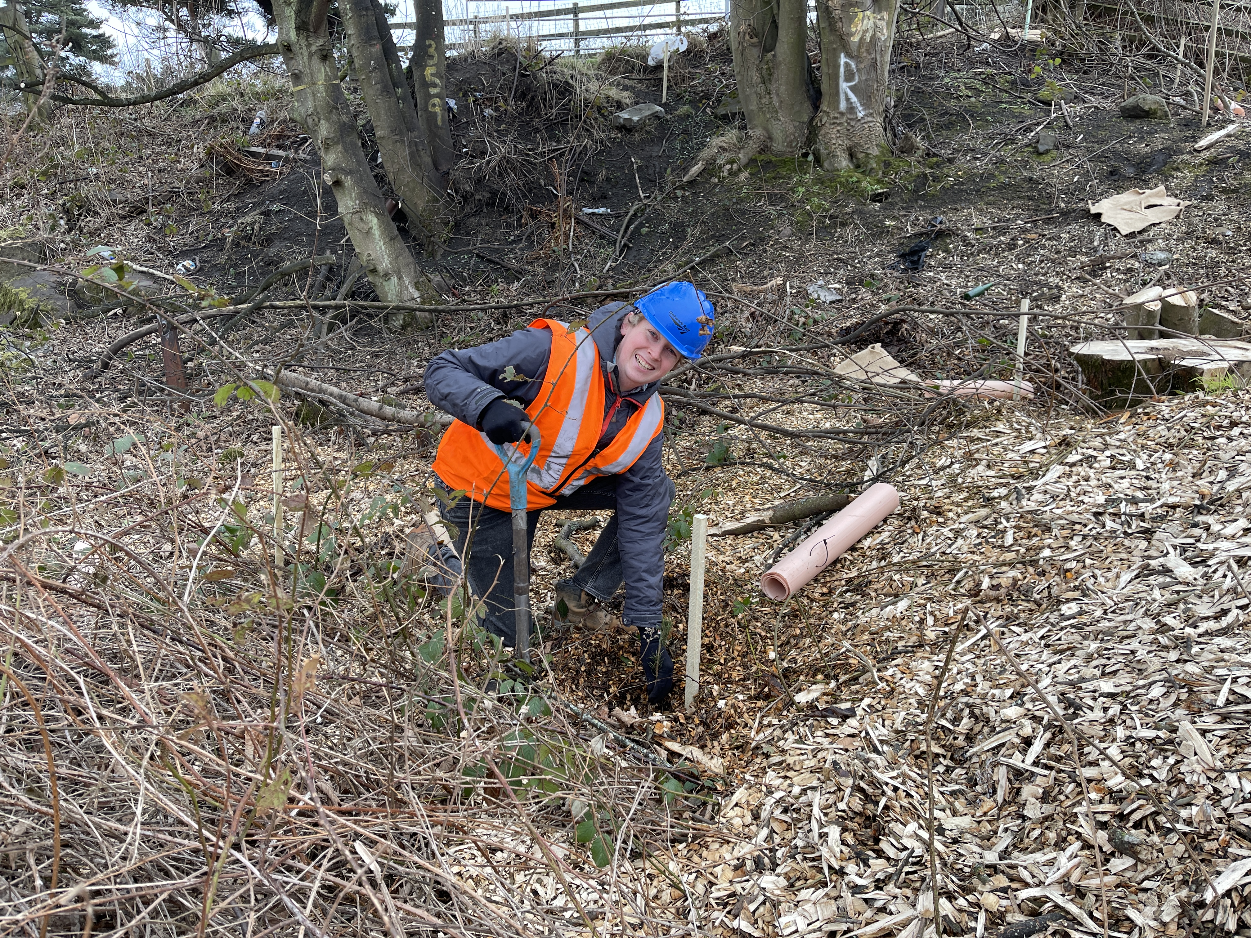 To help re-plant the trees, Network Rail was joined on site by local Councillor David Barratt, who represents the Inverkeithing and Dalgety Bay ward. He toured the site with the project team and was shown some of the environmental features put in place to promote lineside biodiversity and to offset the impact of work in the local area.